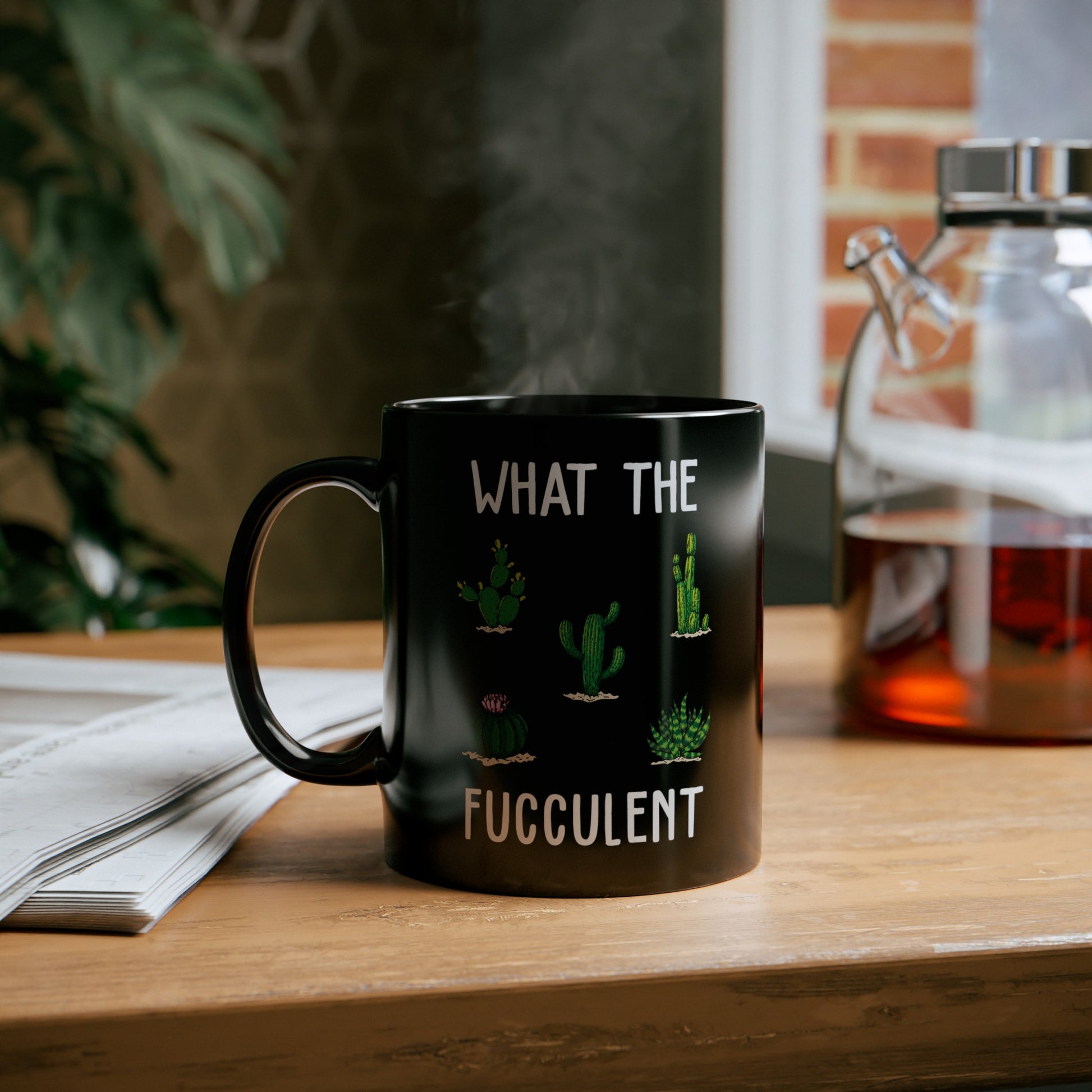 Unleash your quirky side with the What The Fucculent mug, perfect for anyone who loves a good pun and a dash of humor with their morning coffee. This playful black mug is adorned with vibrant, embroidered-looking succulent designs, making it an excellent gift for gardeners, succulent enthusiasts, or anyone who appreciates a cheeky chuckle. Whether it’s tea time or you’re just starting your day, this mug is sure to bring a smile.