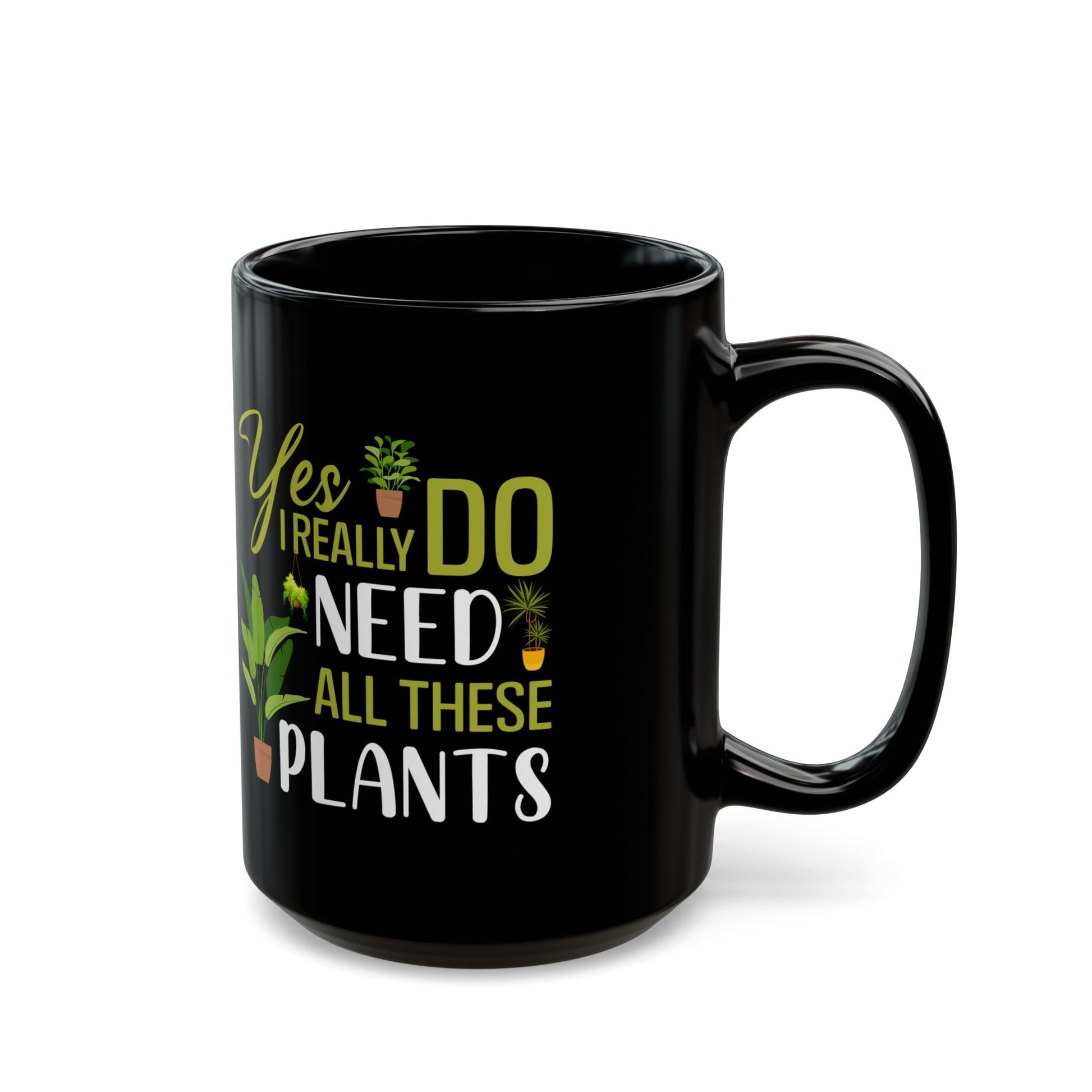 yes i really do need all plants, Black Mug (11oz, 15oz)