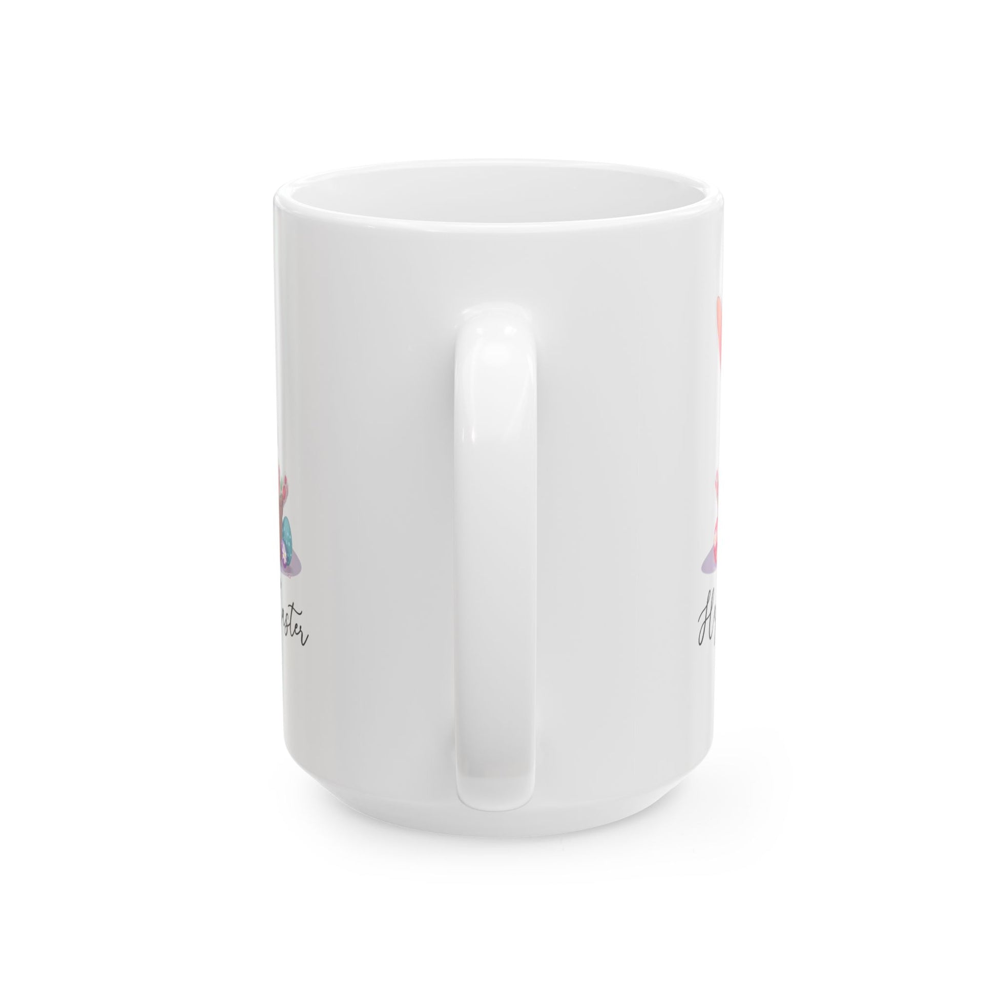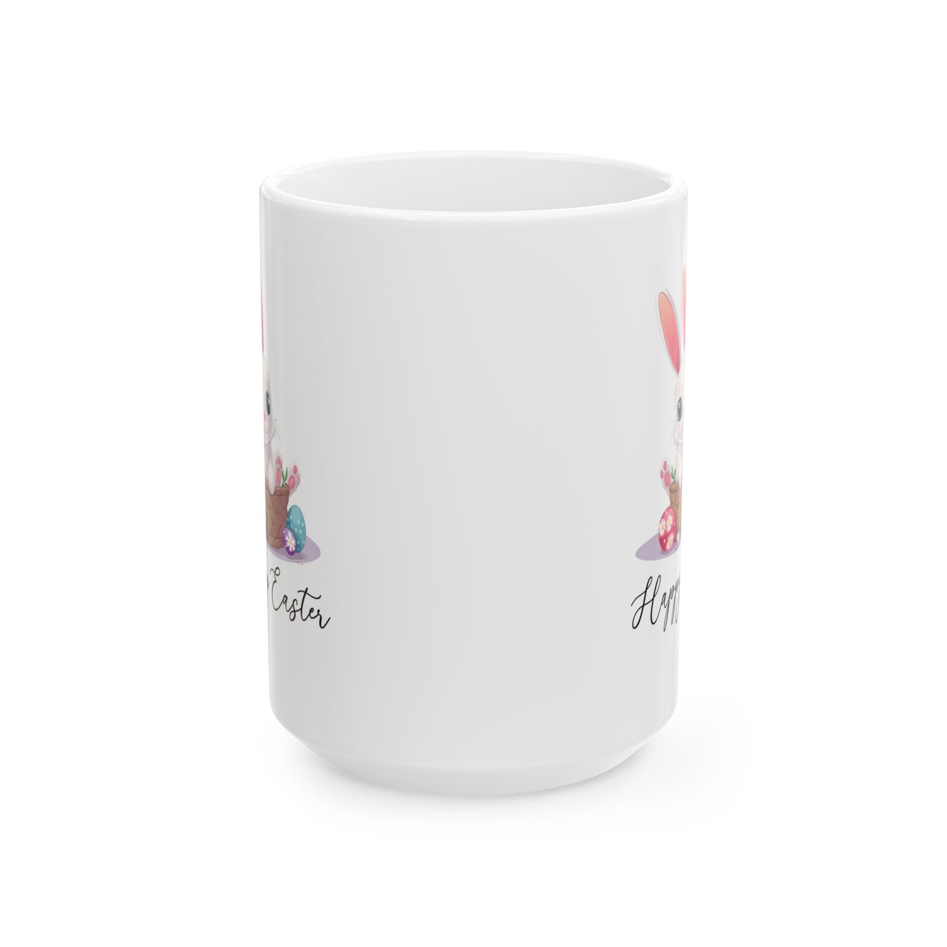 Happy Easter Bunny in Basket Mug – White Cup with Cute Pastel Eggs