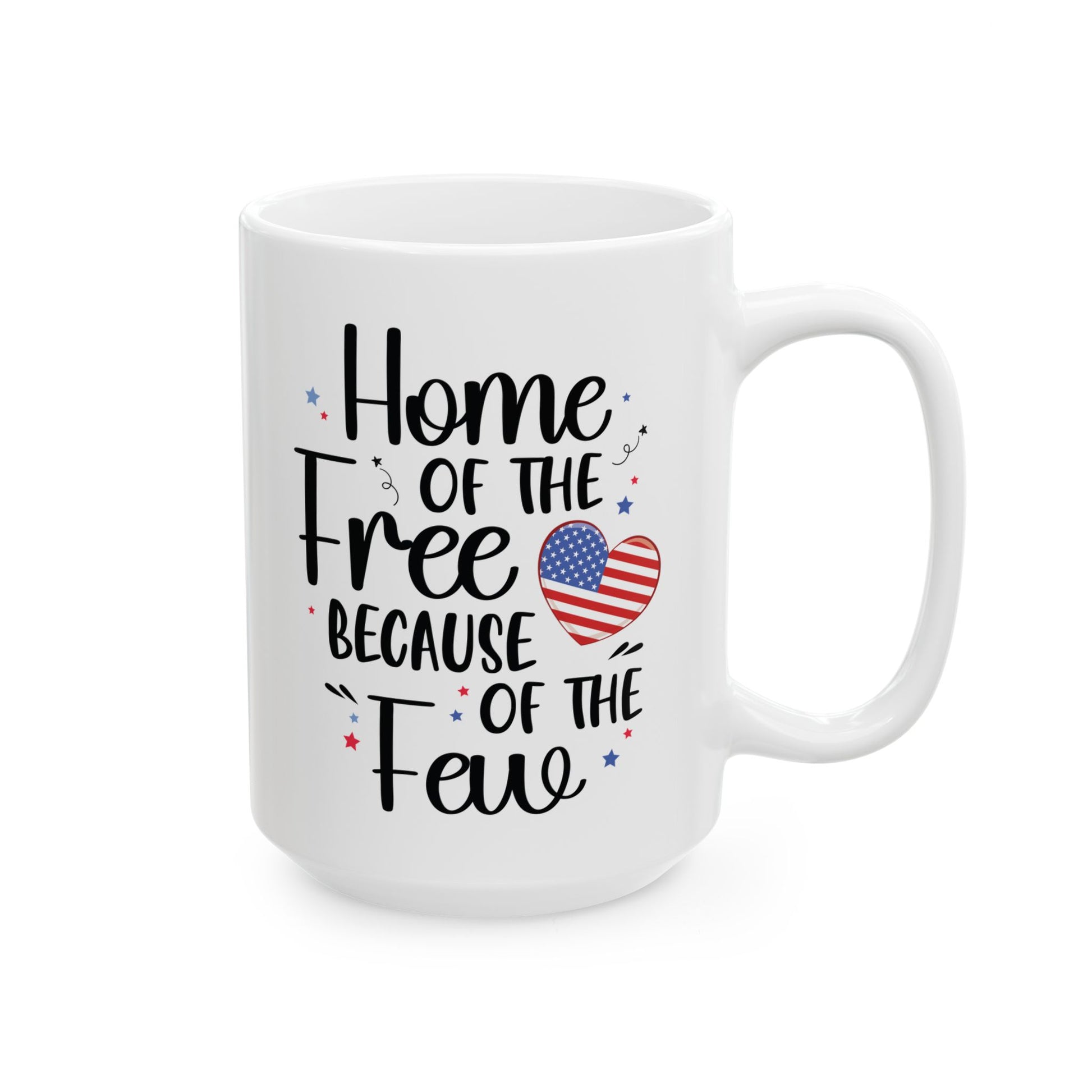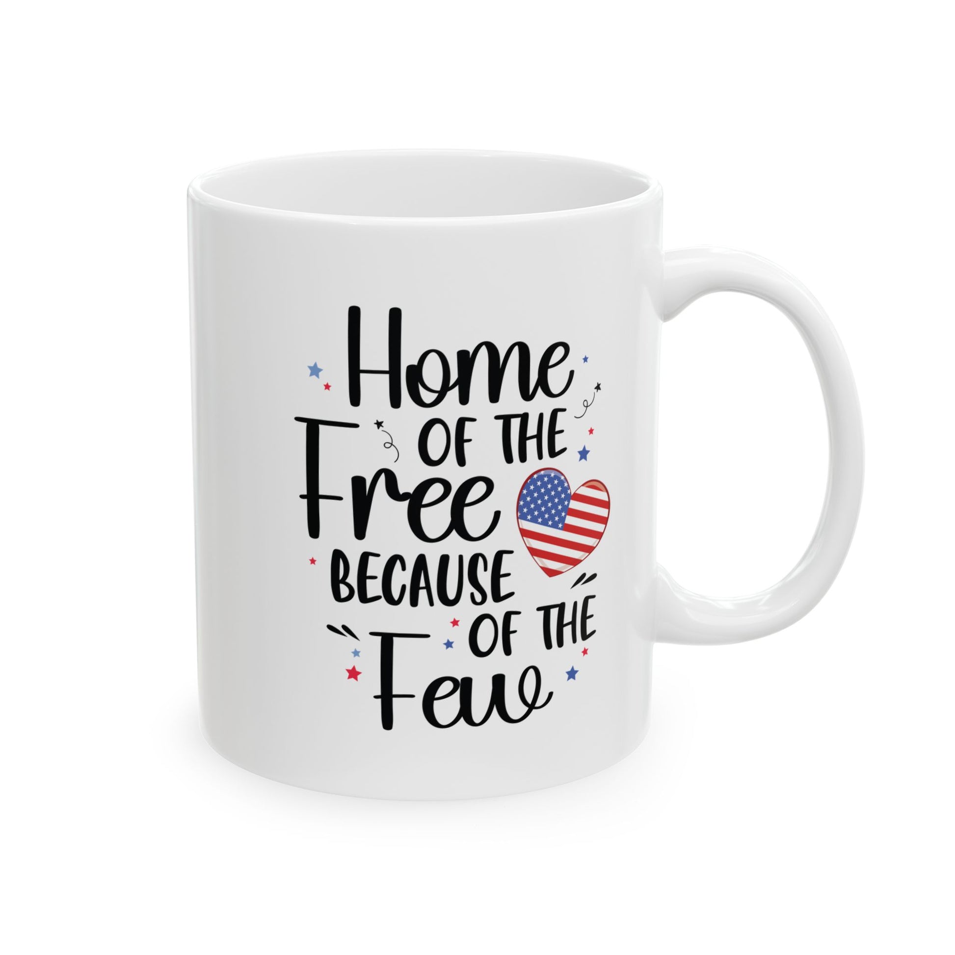 Celebrate the brave men and women who serve our country with this heartfelt patriotic mug that reads, “Home of the Free Because of the Few.” Designed with a bold American flag heart and red, white, and blue accents, this high-quality ceramic coffee cup is a thoughtful gift for veterans, active military members, or anyone who proudly supports the USA. Ideal for Memorial Day, Veterans Day, Independence Day, or daily use at home or the office.