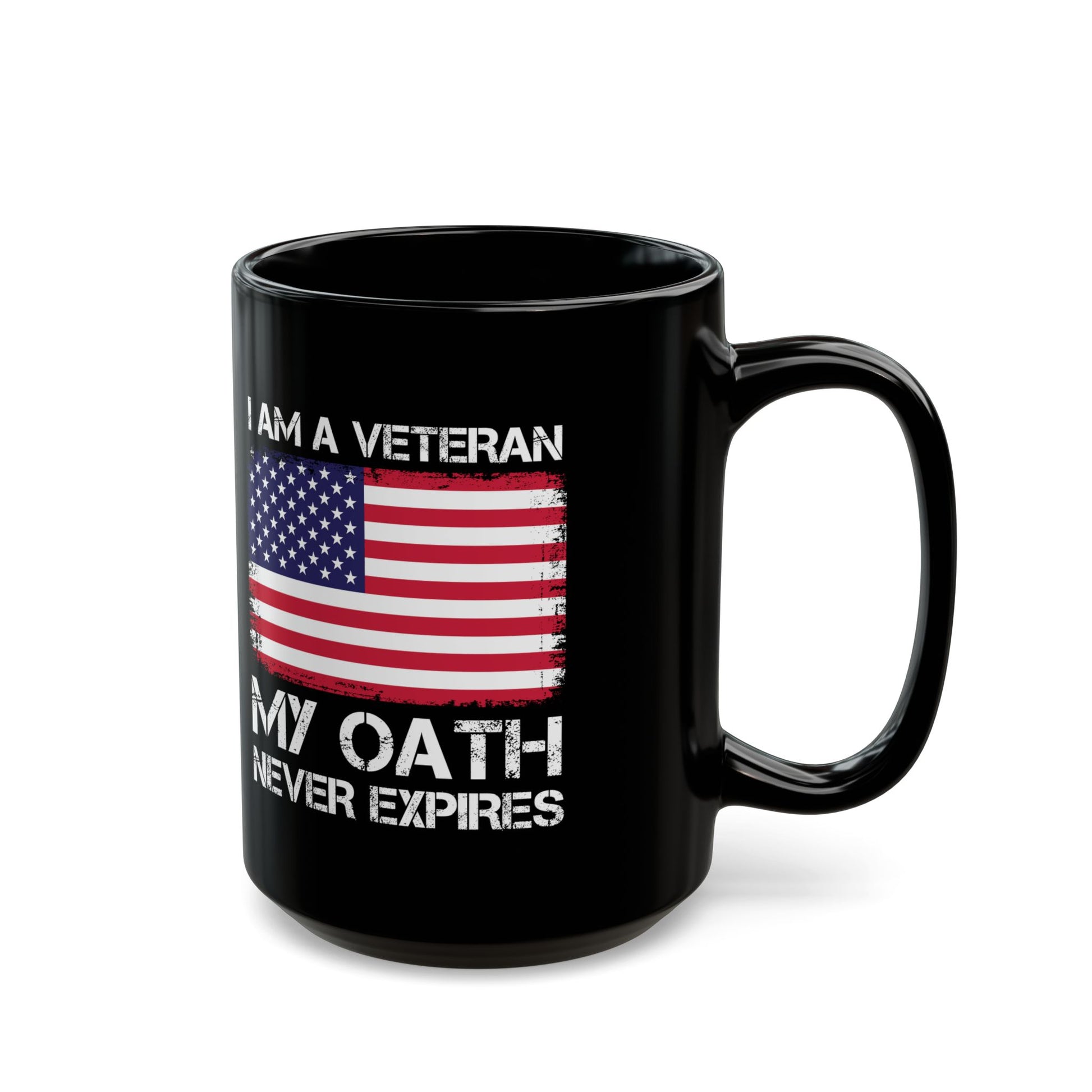 I Am A Veteran My Oath Never Expires Mug – American Flag Black Coffee Cup