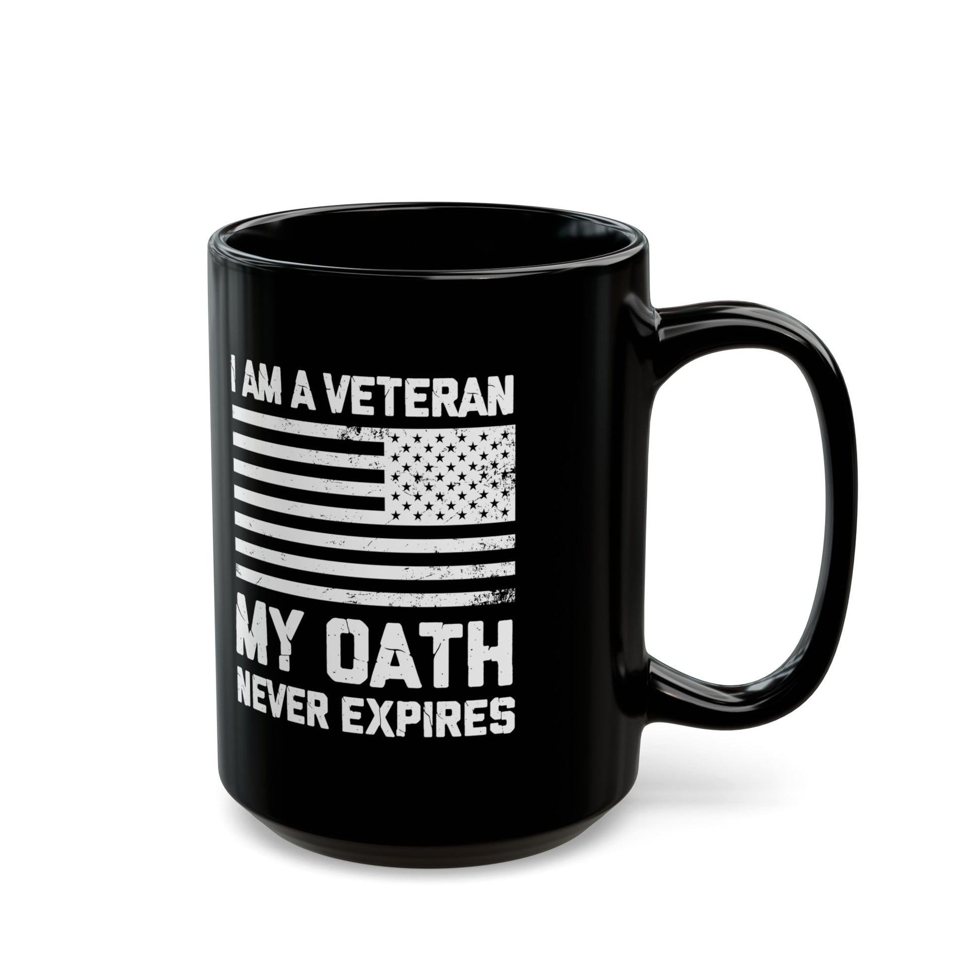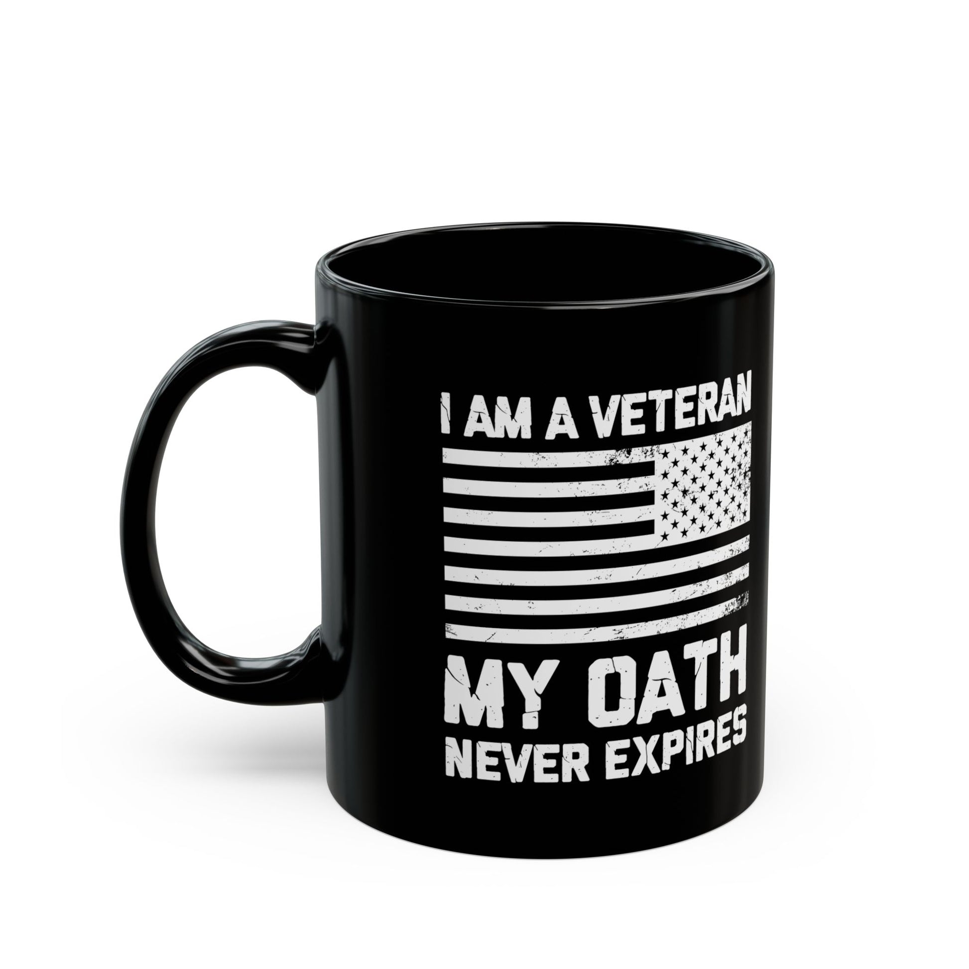 Proudly display your service and unwavering commitment with this bold black ceramic mug. Featuring a distressed American flag and the powerful words “I Am a Veteran, My Oath Never Expires,” it’s a tribute to the brave individuals who continue to stand for freedom long after active duty.