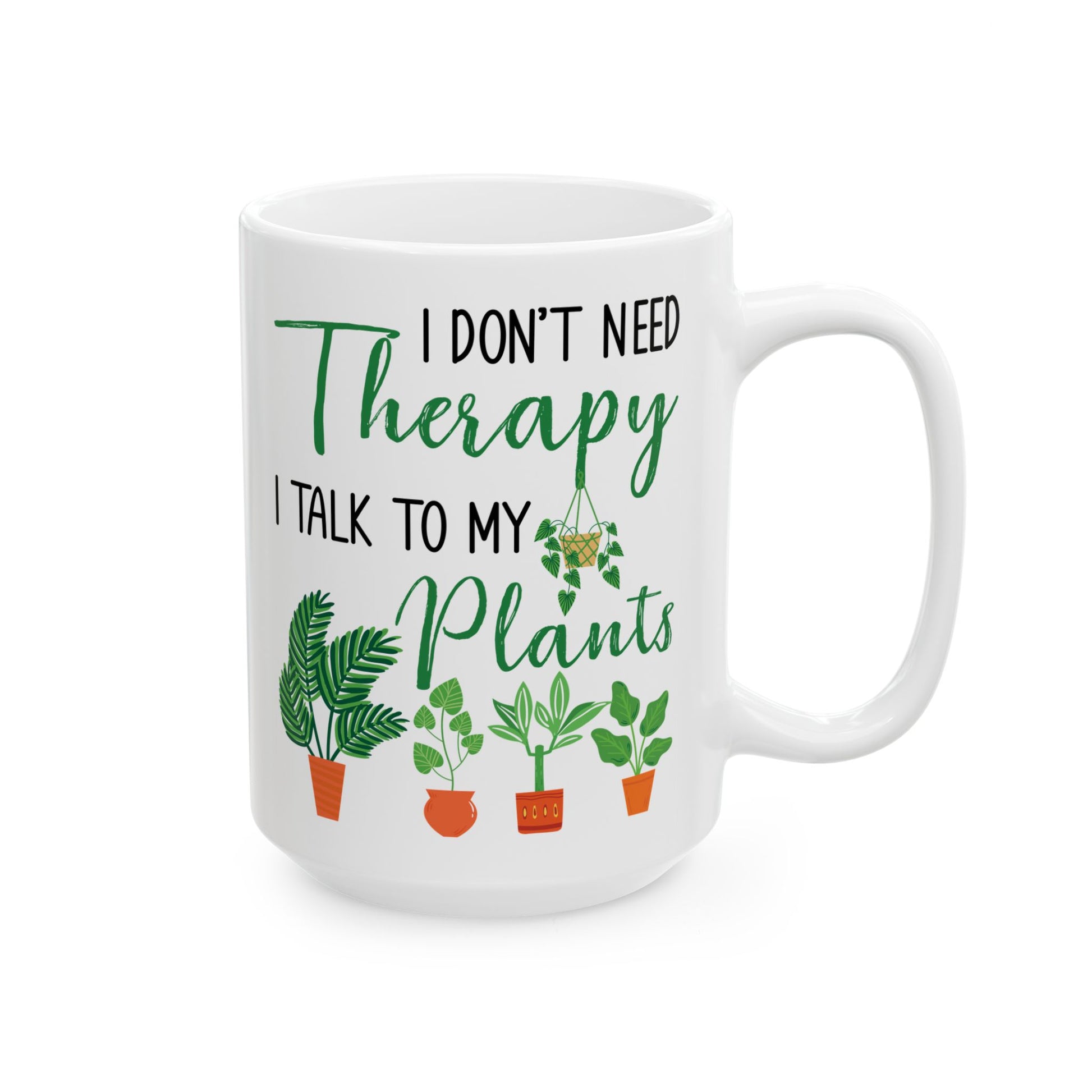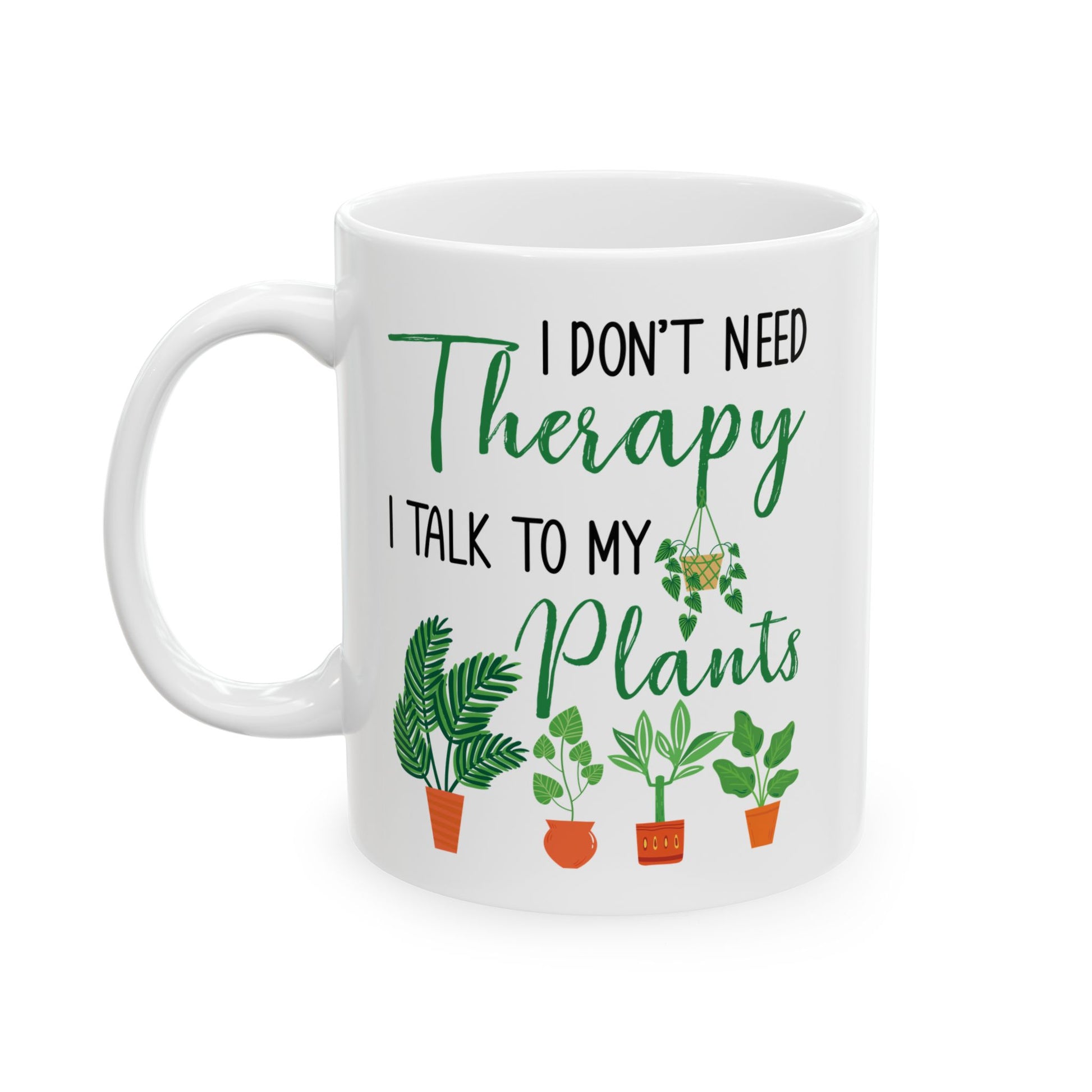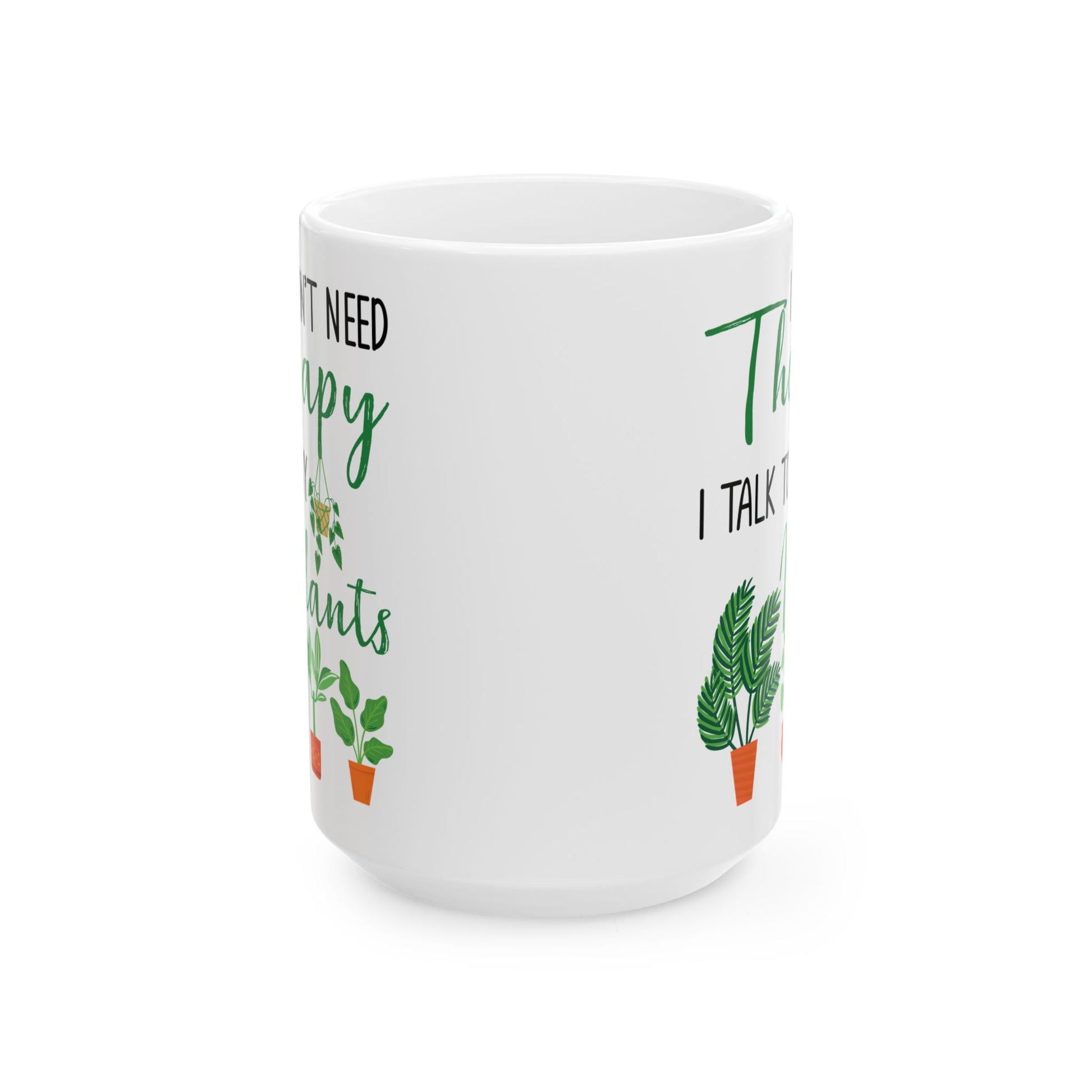 For the plant-obsessed soul who finds peace in pruning and joy in jade plants, this “I Don’t Need Therapy, I Talk to My Plants” white ceramic mug is the ultimate expression of green thumb pride.