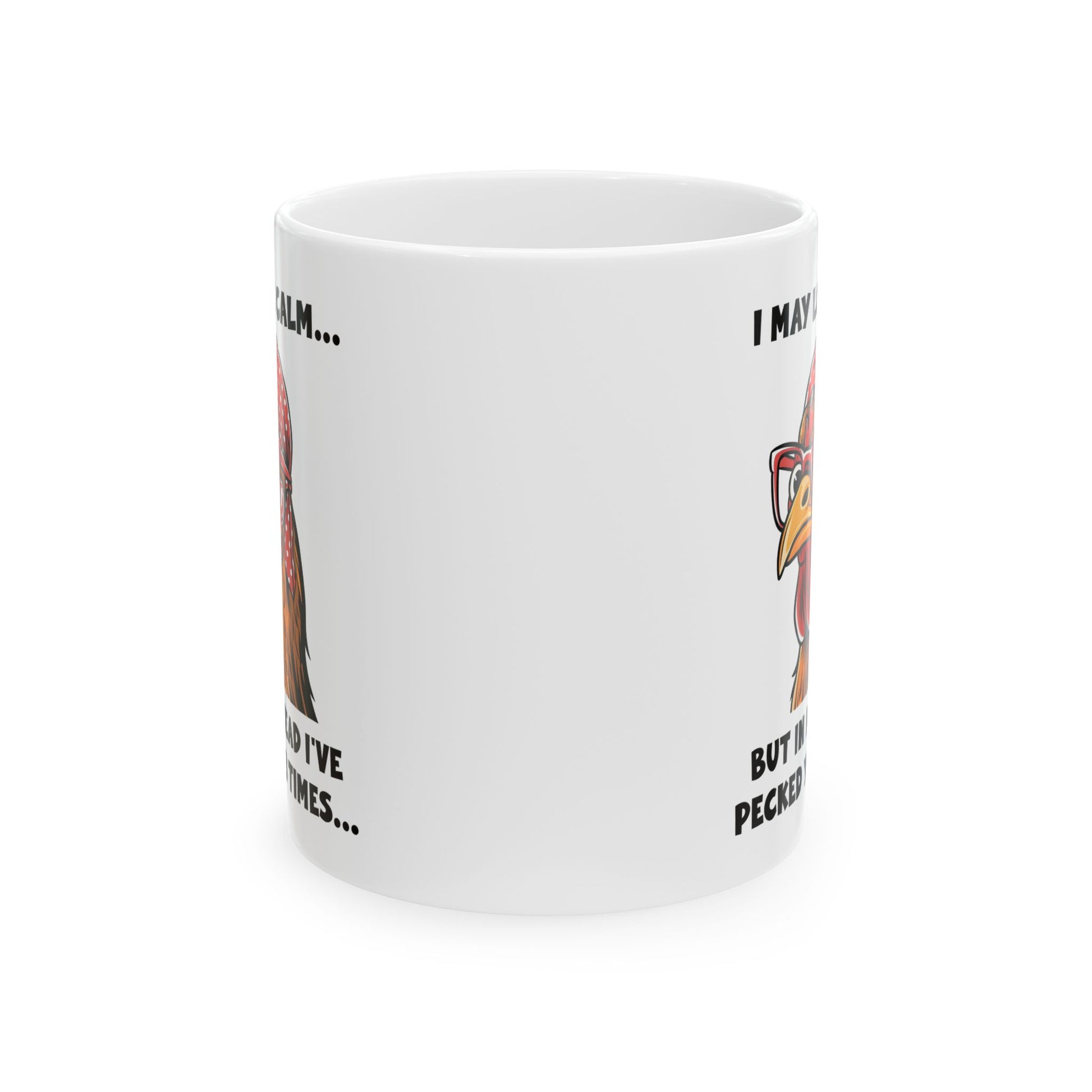 Funny Chicken Mug – I May Look Calm But I've Pecked You 3 Times