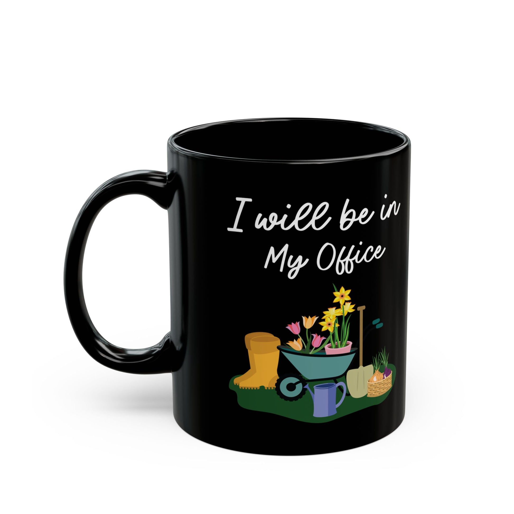 Give a Gift to a Garden Lover – I Will Be in My Office Mug Black Ceramic Coffee Cup