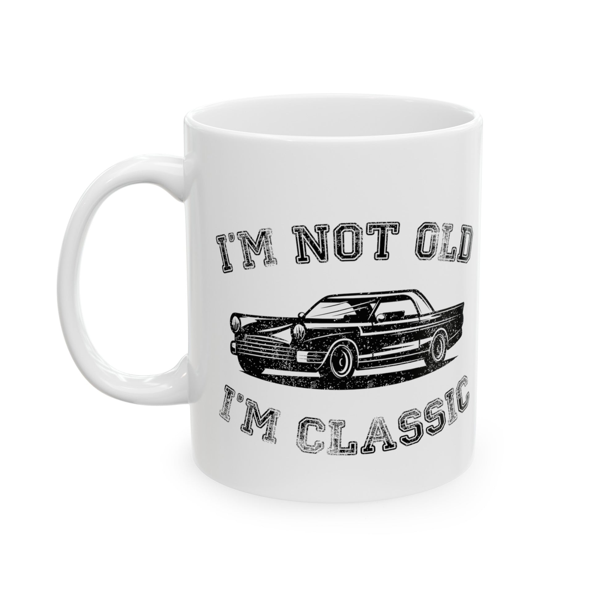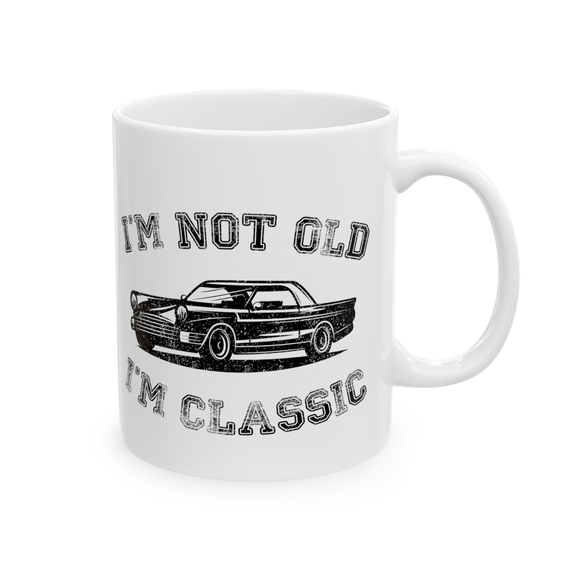 Celebrate timeless style with the I'm Not Old I'm Classic Mug. Featuring a vintage car graphic and a witty message, this mug is perfect for those who embrace their classic status. The phrase "I'm Not Old I'm Classic" makes it a humorous and stylish gift for any car enthusiast or anyone who appreciates classic things. Ideal for sipping coffee or tea while adding some personality to your daily routine.