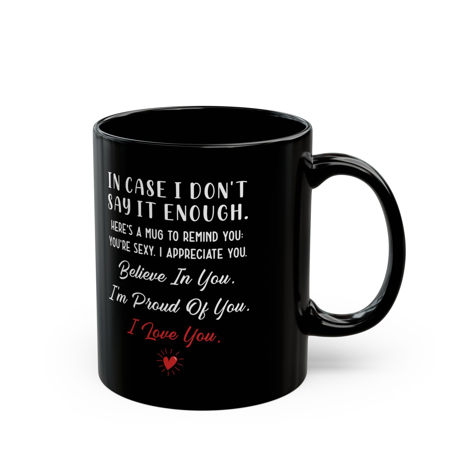 "In case I don’t say it enough. Here’s a mug to remind you: You’re sexy. I appreciate you. Believe in you. I’m proud of you. I love you."