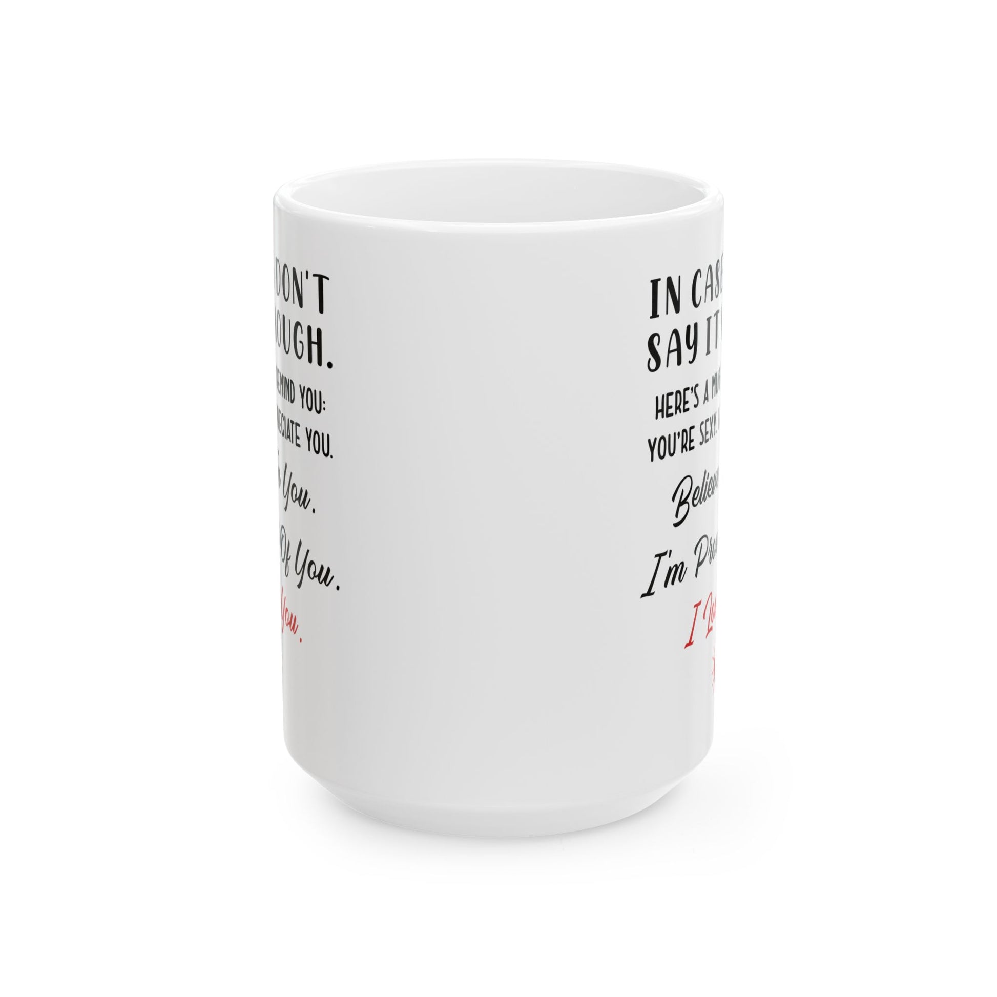 "In case I don’t say it enough. Here’s a mug to remind you: You’re sexy. I appreciate you. Believe in you. I’m proud of you. I love you."