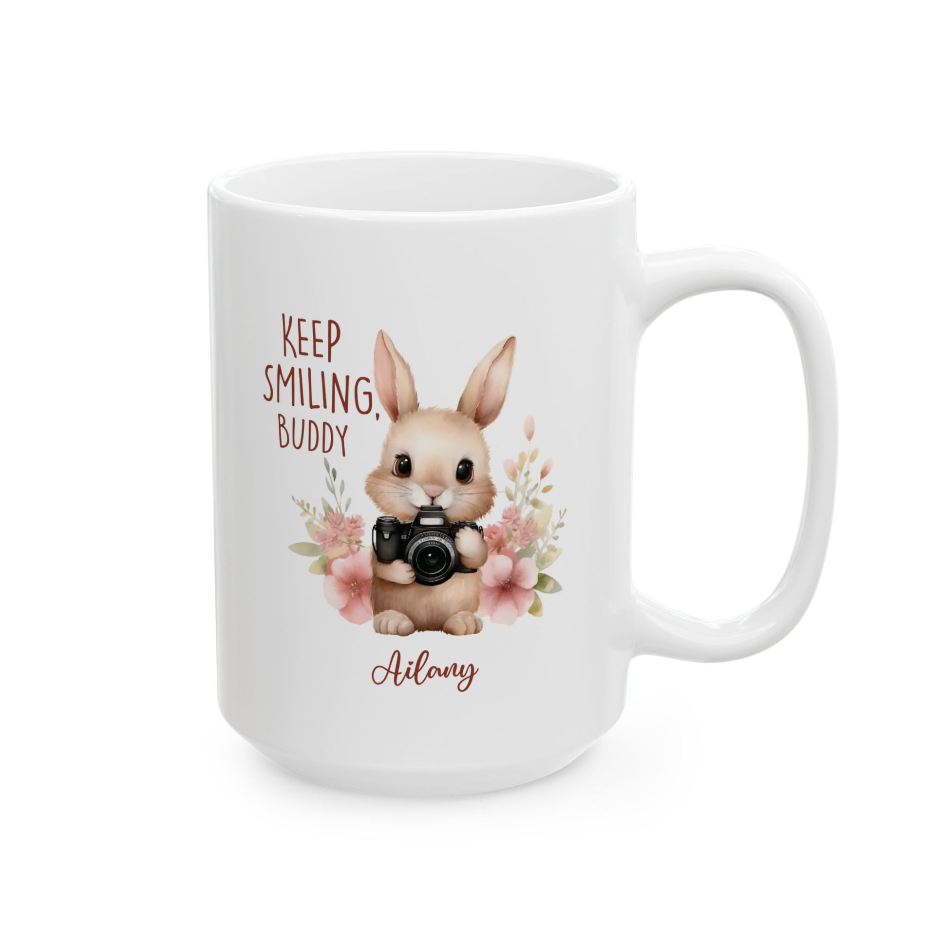 Keep Smiling Buddy Bunny Mug – Personalized Cute Gift with Name