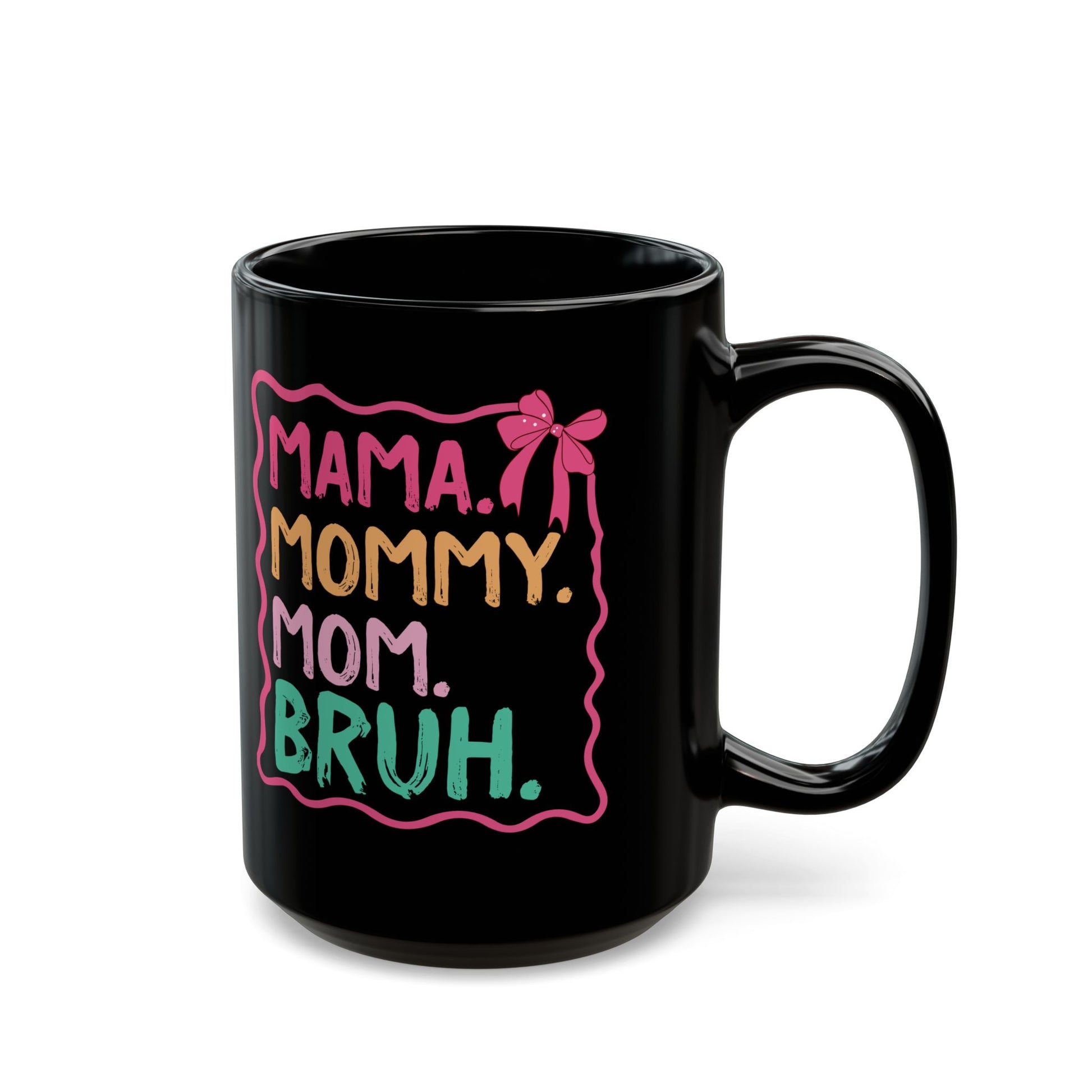 MAMA. MOMMY. MOM. BRUH Black Mug (11oz, 15oz)