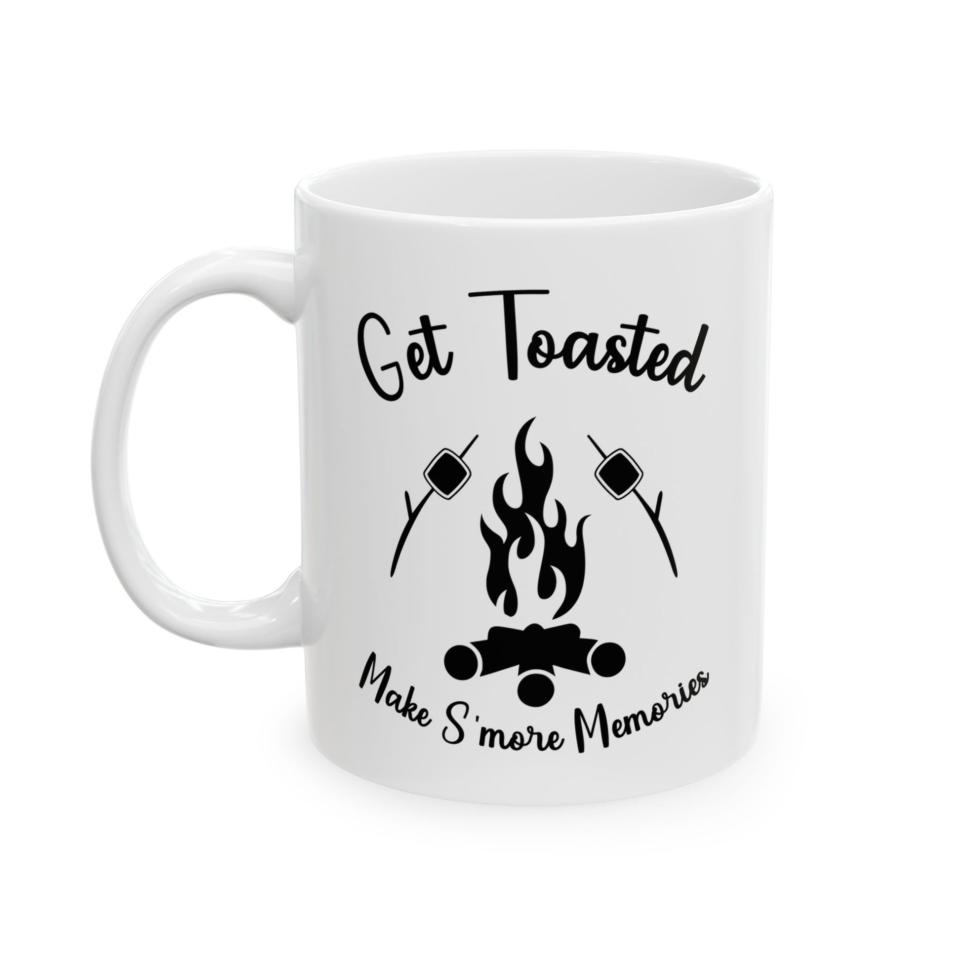 Minimalist Black and White Camping Design Ceramic Mug, (11oz, 15oz)