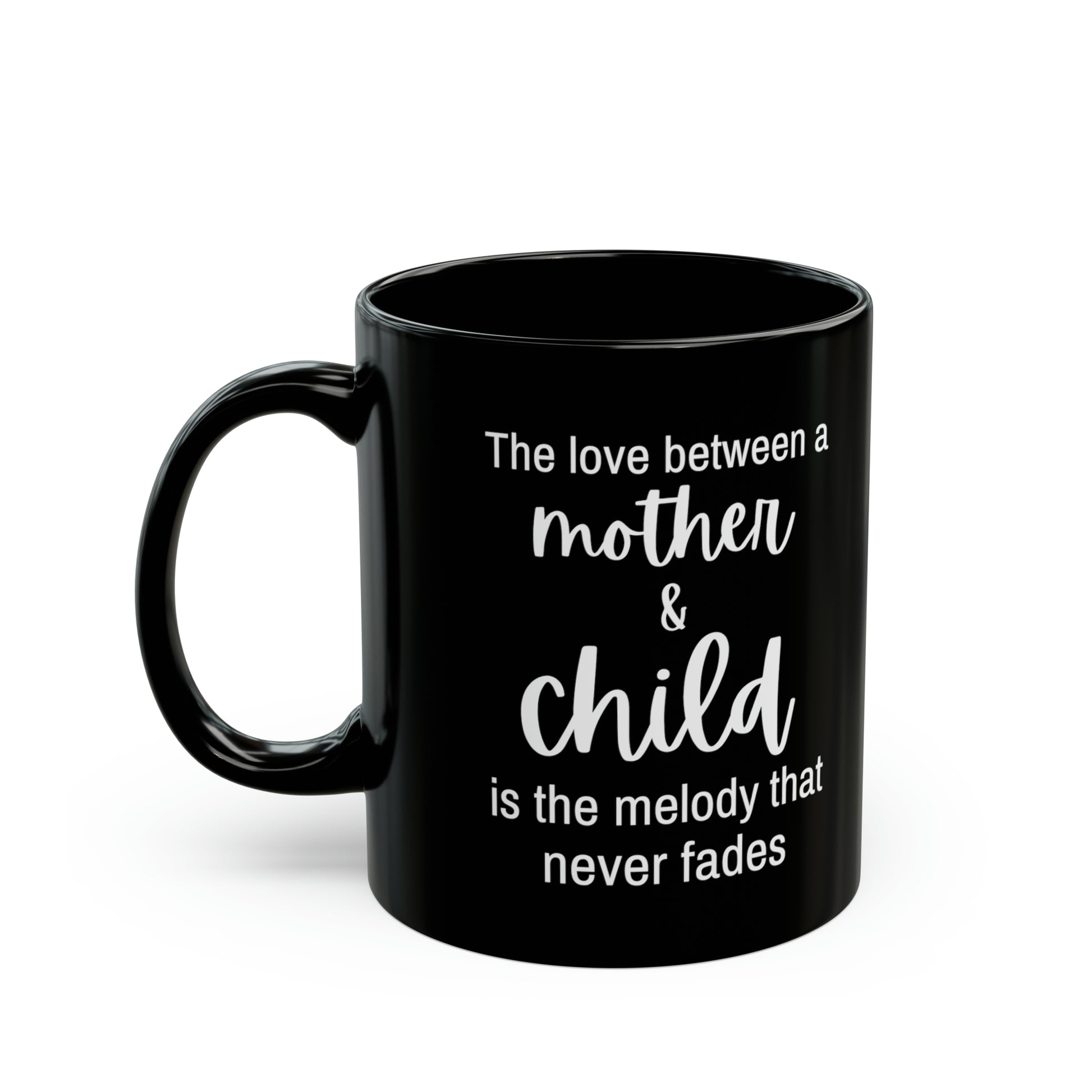 Express the timeless bond between a mother and child with this beautiful black ceramic coffee mug. Featuring the touching quote,