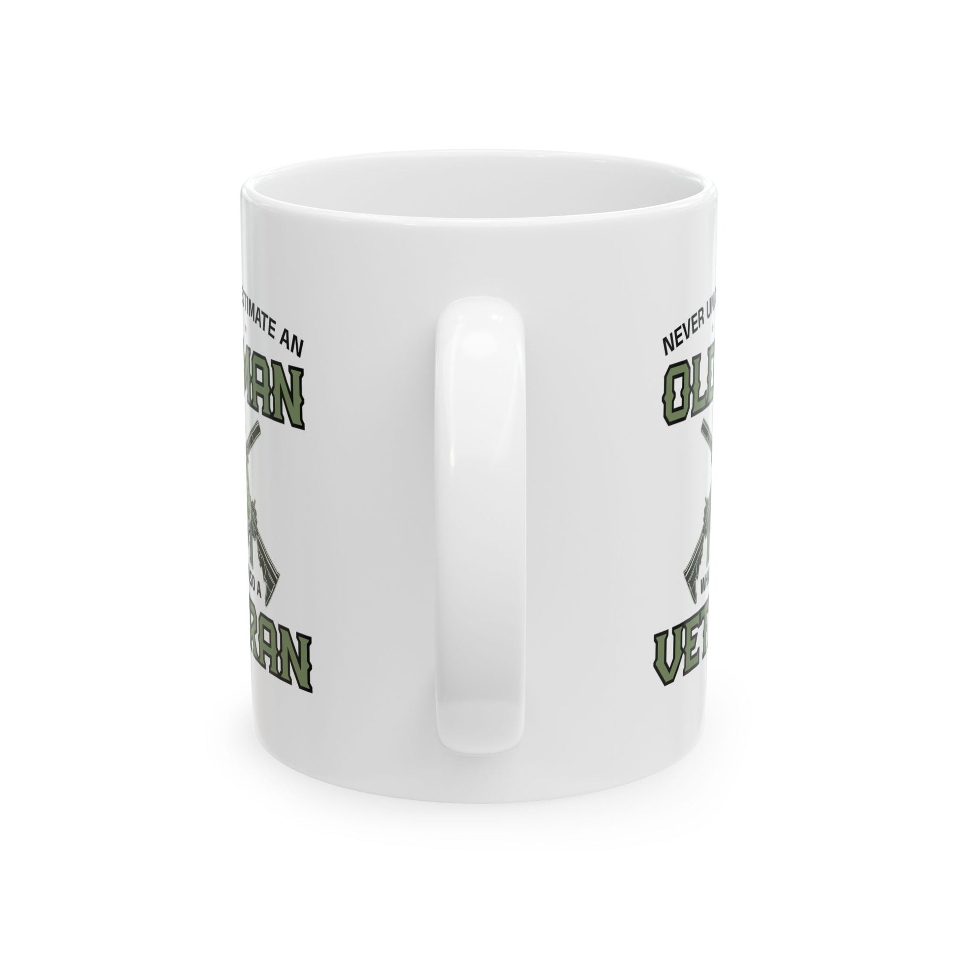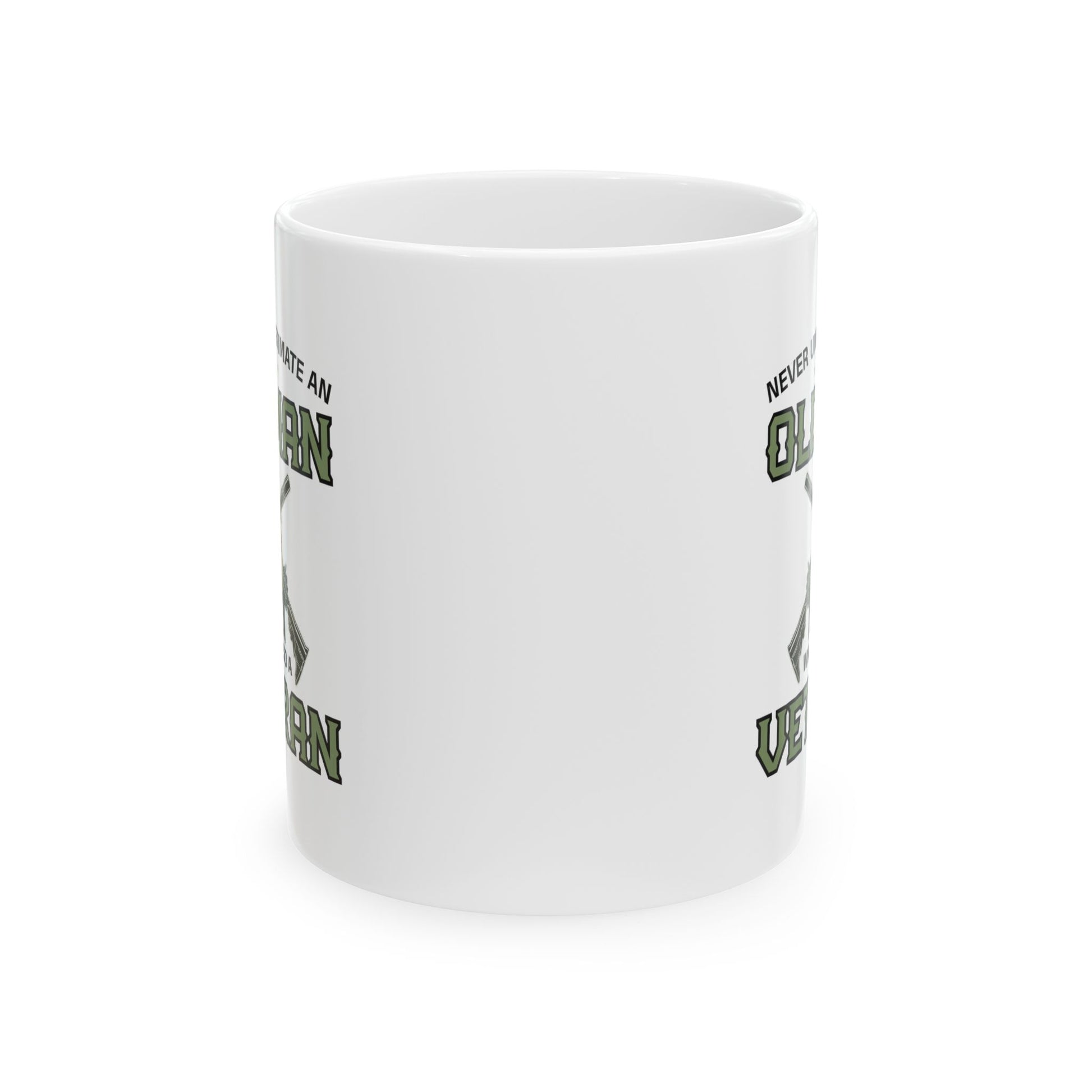 Give a Gift to a Veteran – Never Underestimate an Old Man Mug White Ceramic Patriotic Coffee Cup