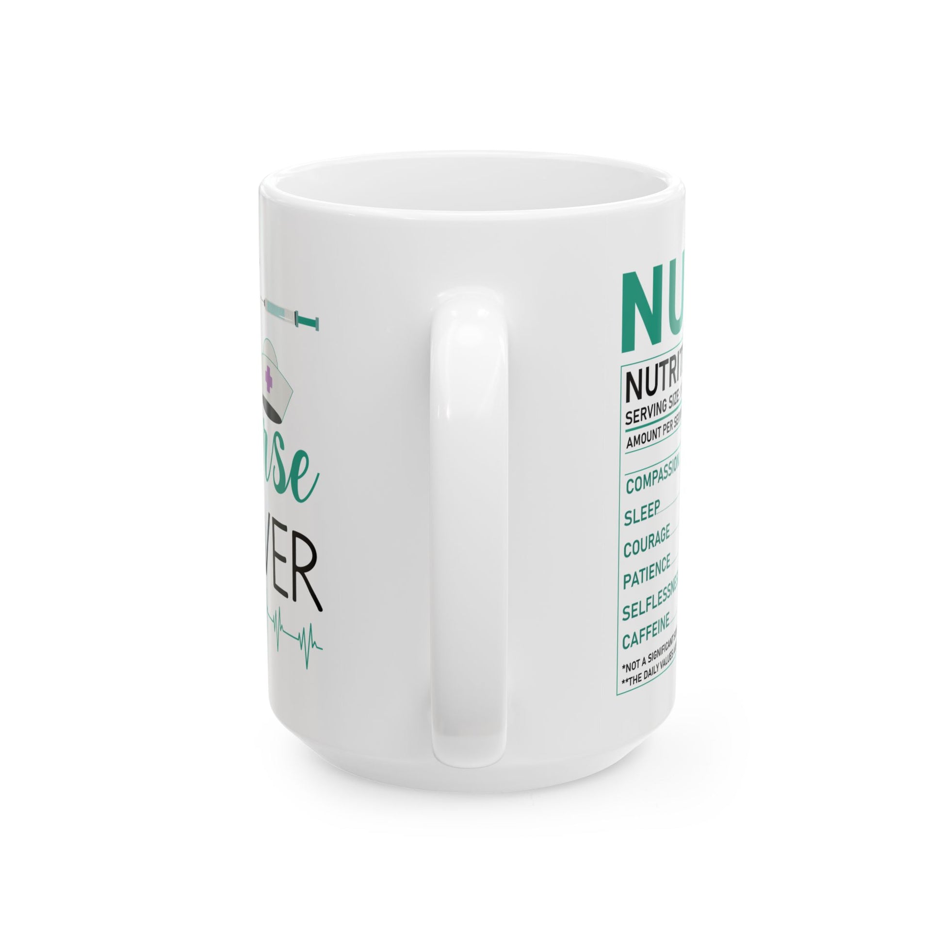 Product Description: This “Nurse Nutrition Facts” mug is a perfect blend of humor and appreciation for the hardworking nurses in your life. With a clever design that mimics a nutrition label, this mug highlights key attributes like compassion, patience, courage, and the much-needed caffeine that every nurse relies on. Whether you're celebrating Nurse’s Week, a birthday, or just want to show some appreciation, this mug will surely bring a smile to any nurse’s face. Made from durable ceramic, it’s both microwave and dishwasher safe for ultimate convenience.