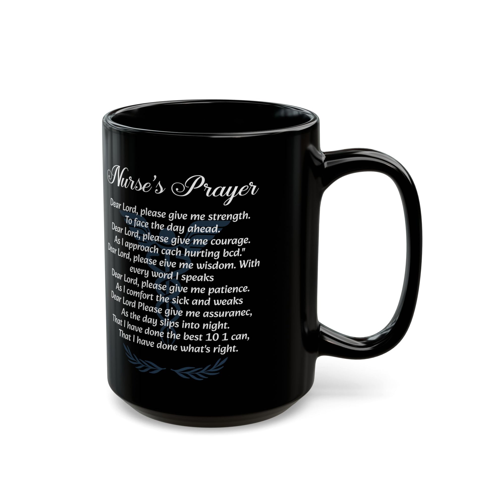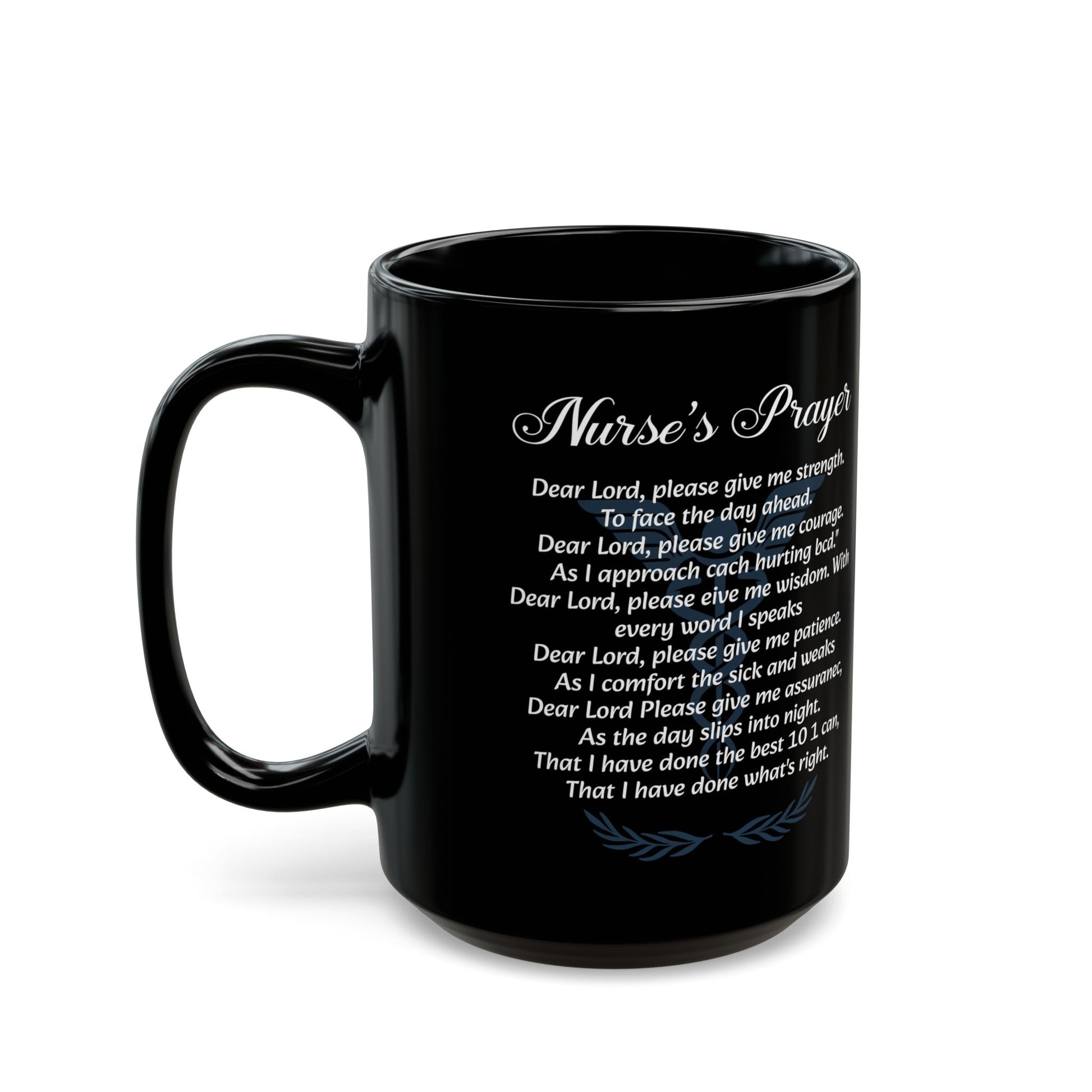 Encourage the heart of a nurse with this meaningful black ceramic mug featuring the “Nurse’s Prayer” beautifully printed in elegant white script. Perfect for registered nurses, nursing students, or healthcare heroes, this mug offers daily comfort and strength with every sip.