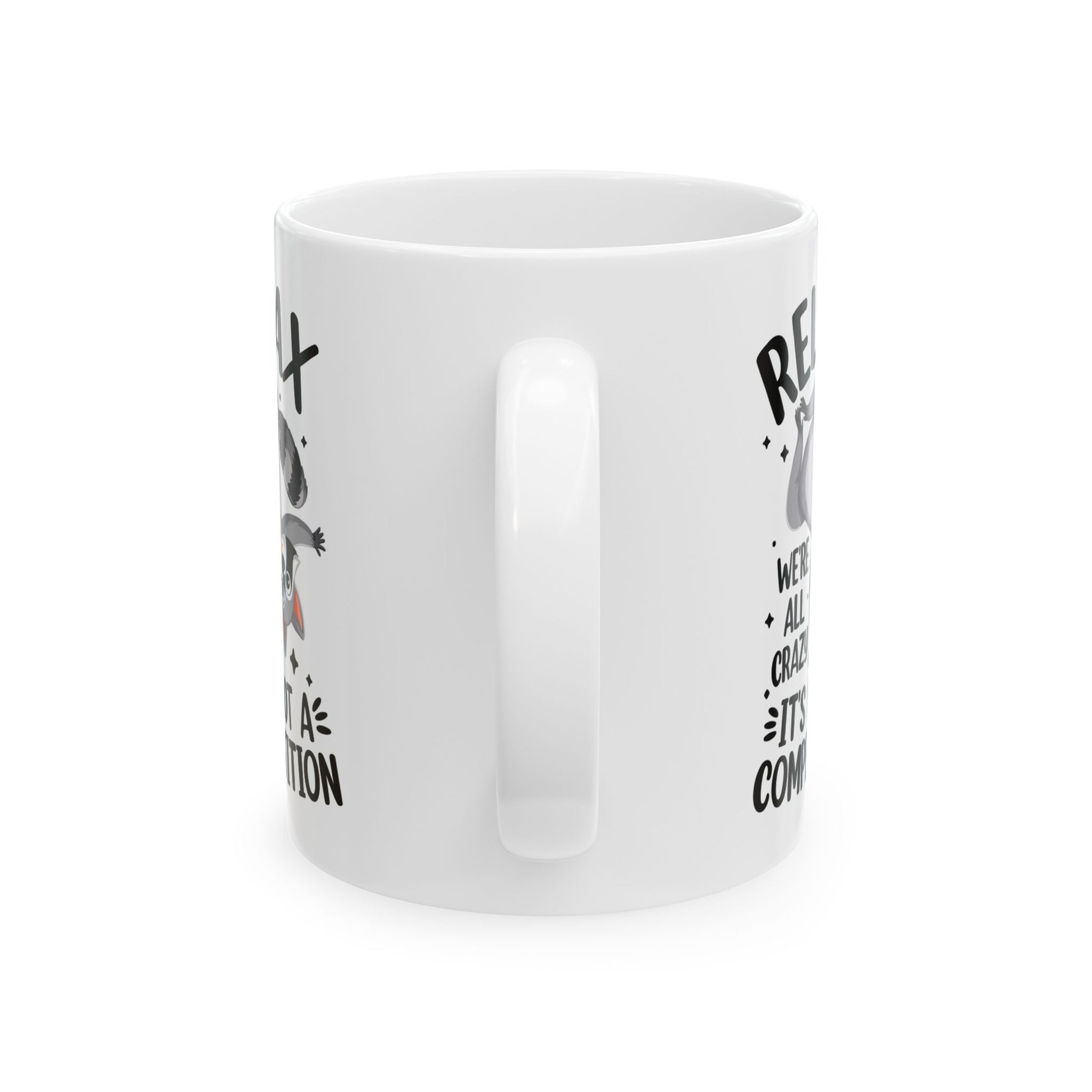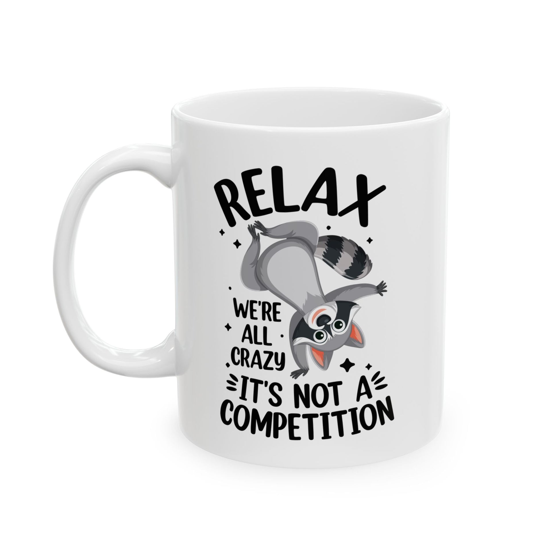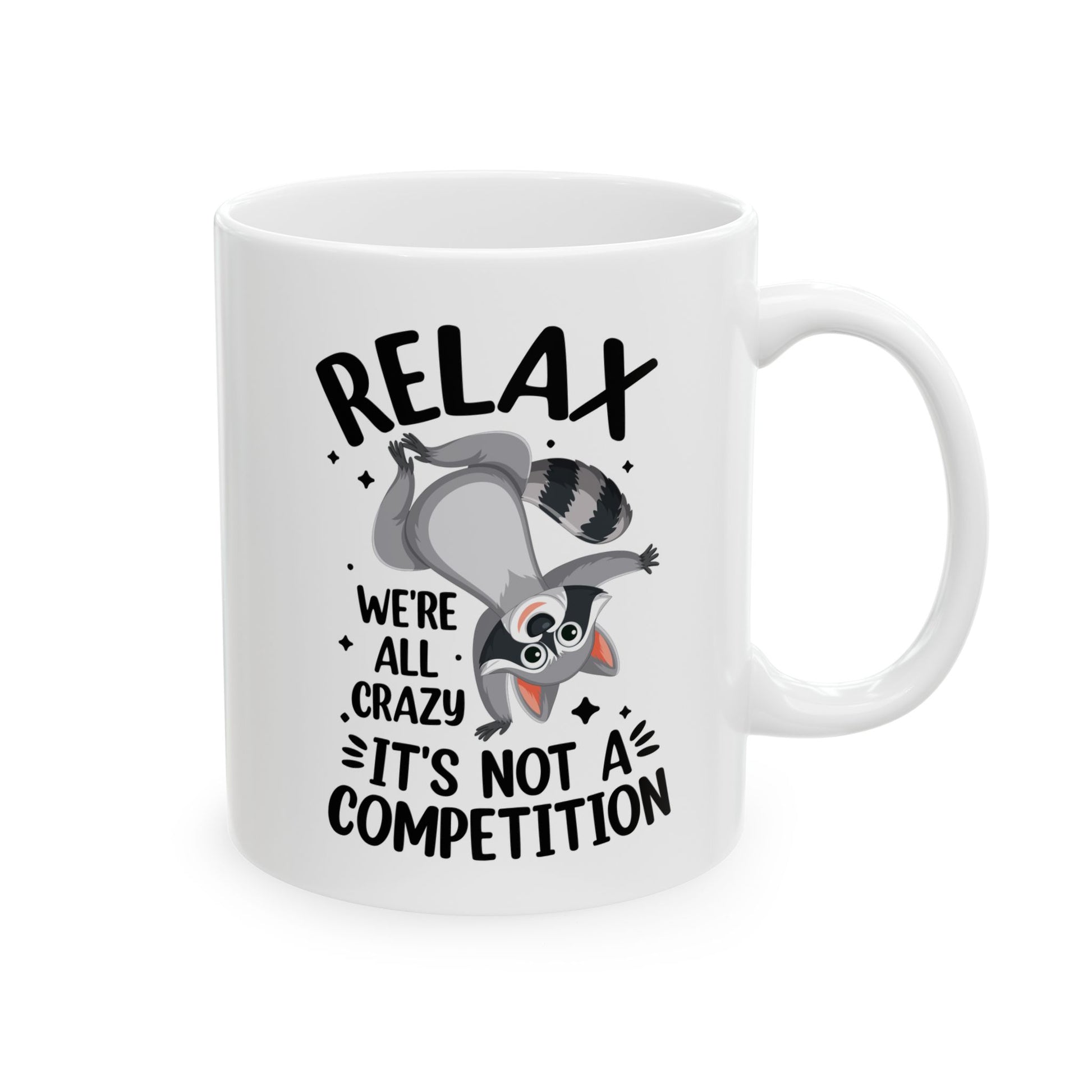 Relax we're all crazy its not v3, white Mug, (11oz, 15oz)