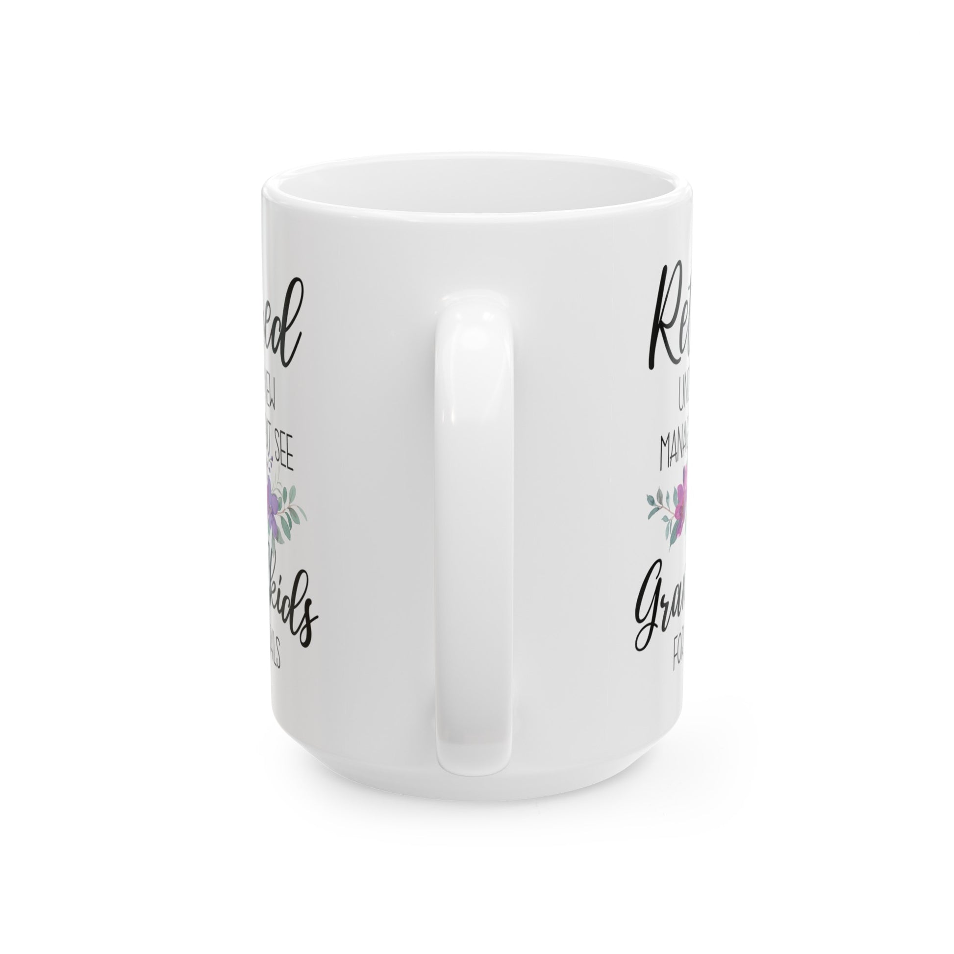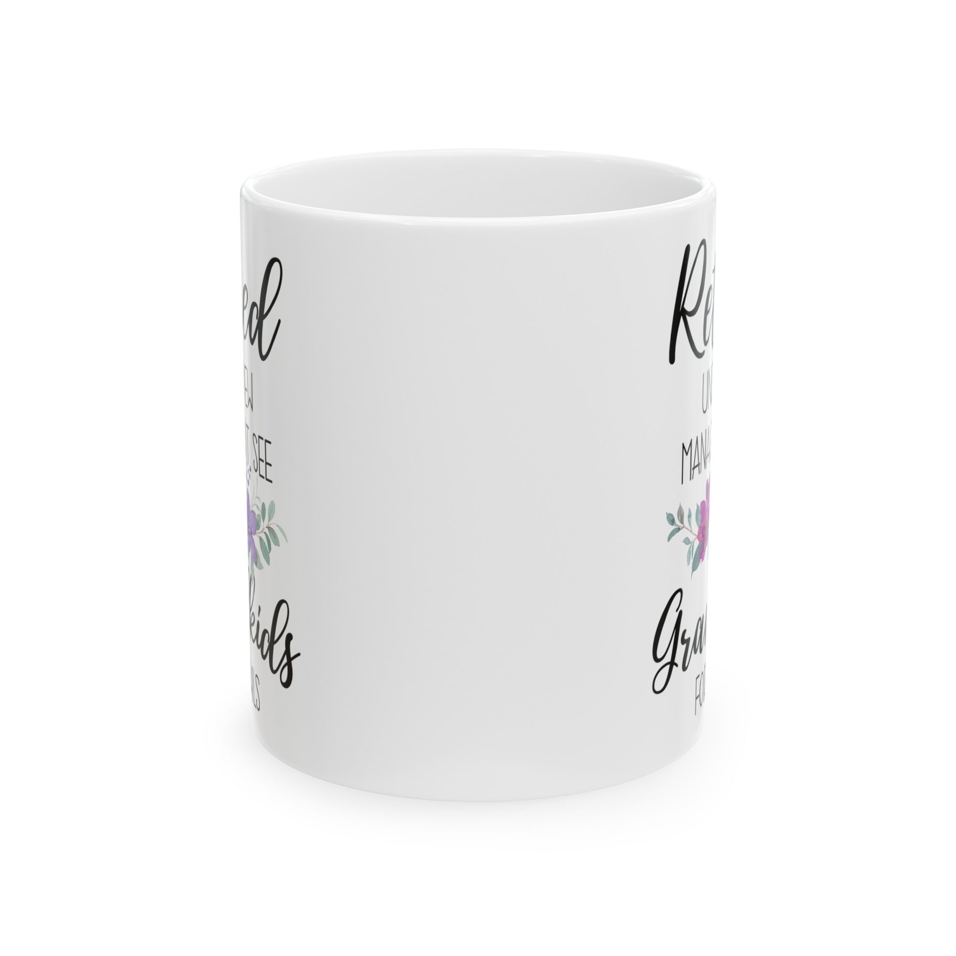 Celebrate retirement in a lighthearted way with the Retired Under New Management Mug. This charming mug features a floral design and a humorous message: "Retired Under New Management. See Grandkids for Details." It's the perfect gift for retirees who are embracing their new role as grandparent managers. Whether it's for a birthday, retirement party, or just a fun gesture, this mug brings a smile with every sip.
