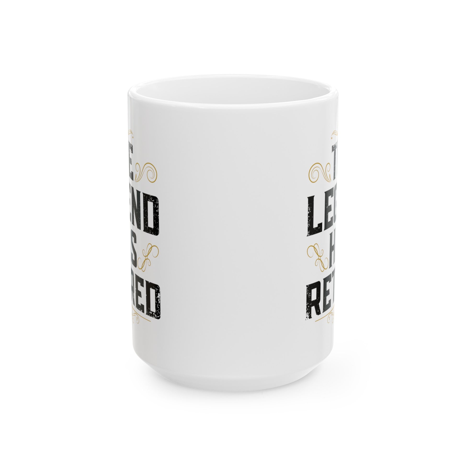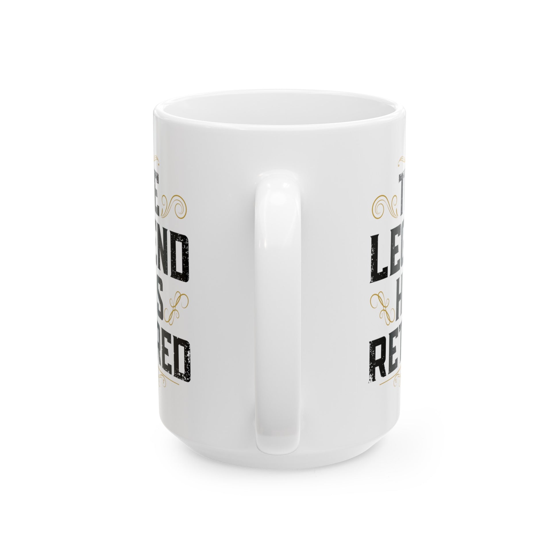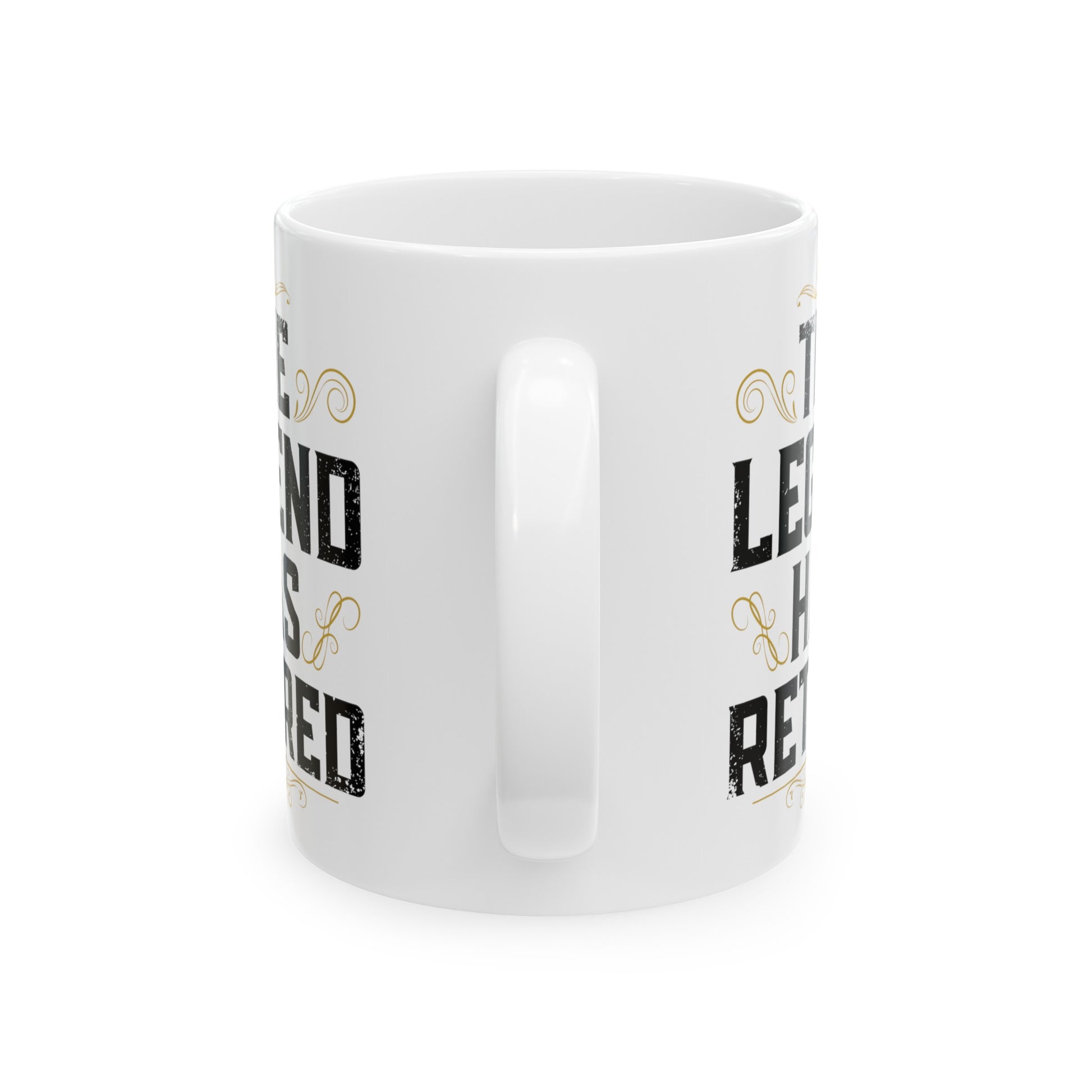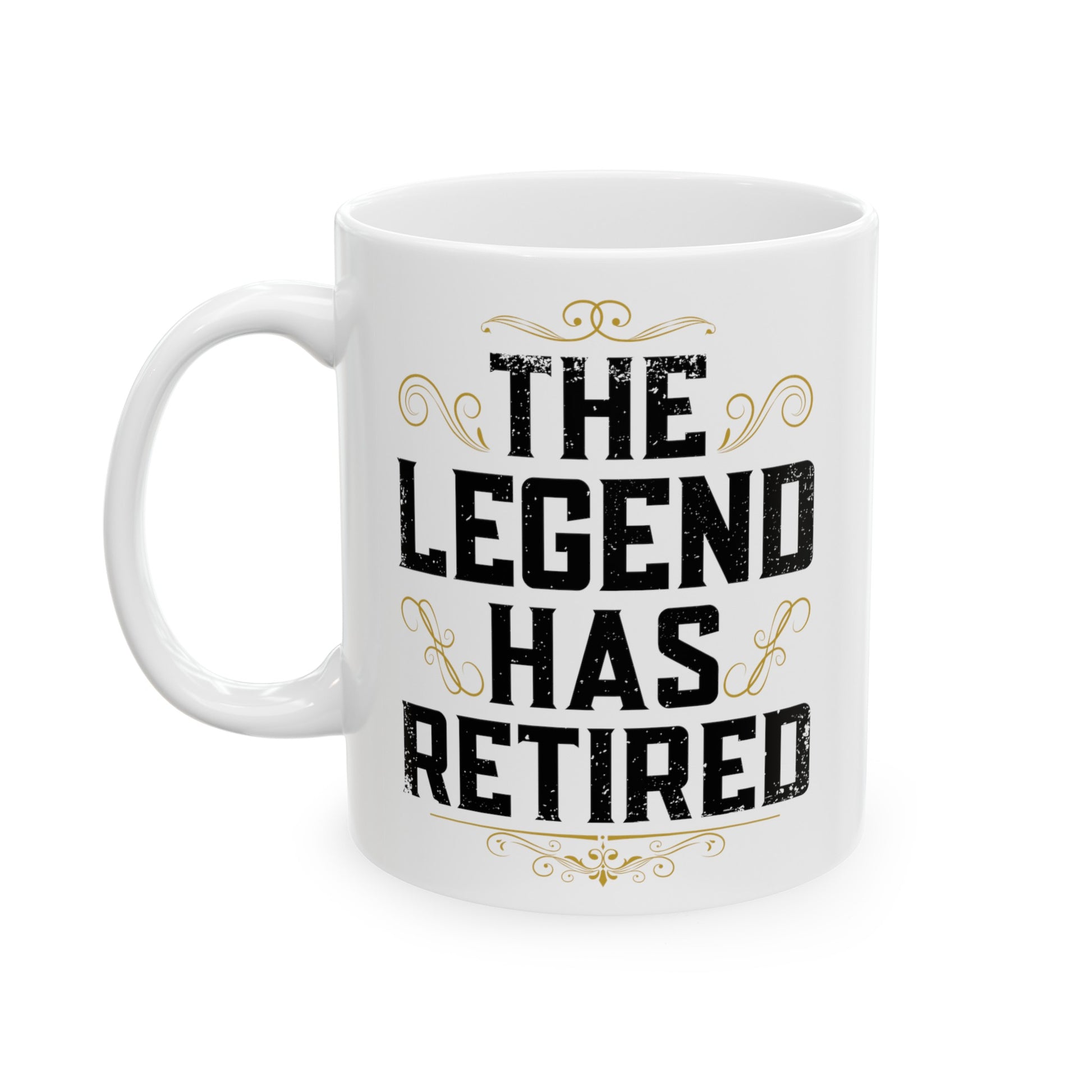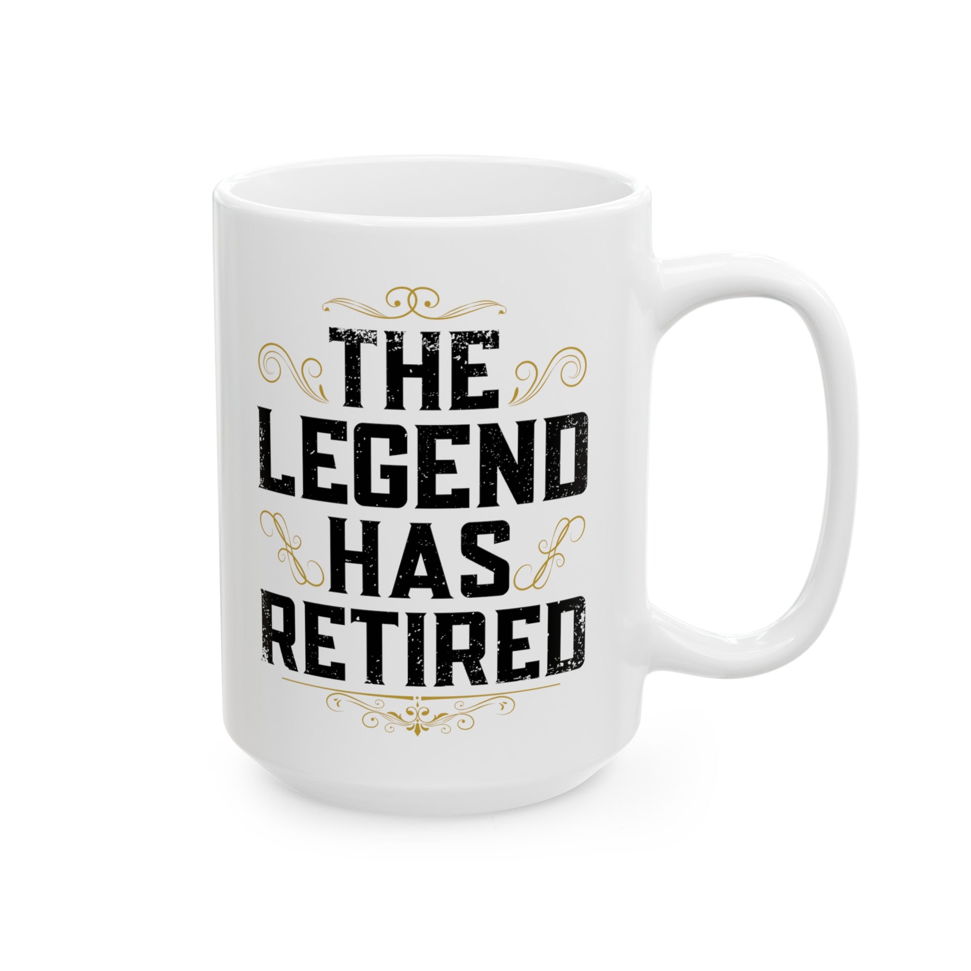 Celebrate a significant milestone with our "The Legend Has Retired" white mug. This mug features an elegant design with ornate gold accents, perfect for someone who has made a significant impact in their career and is now stepping into their well-deserved retirement. It's not just a mug, but a tribute to achievements and a new chapter ahead.