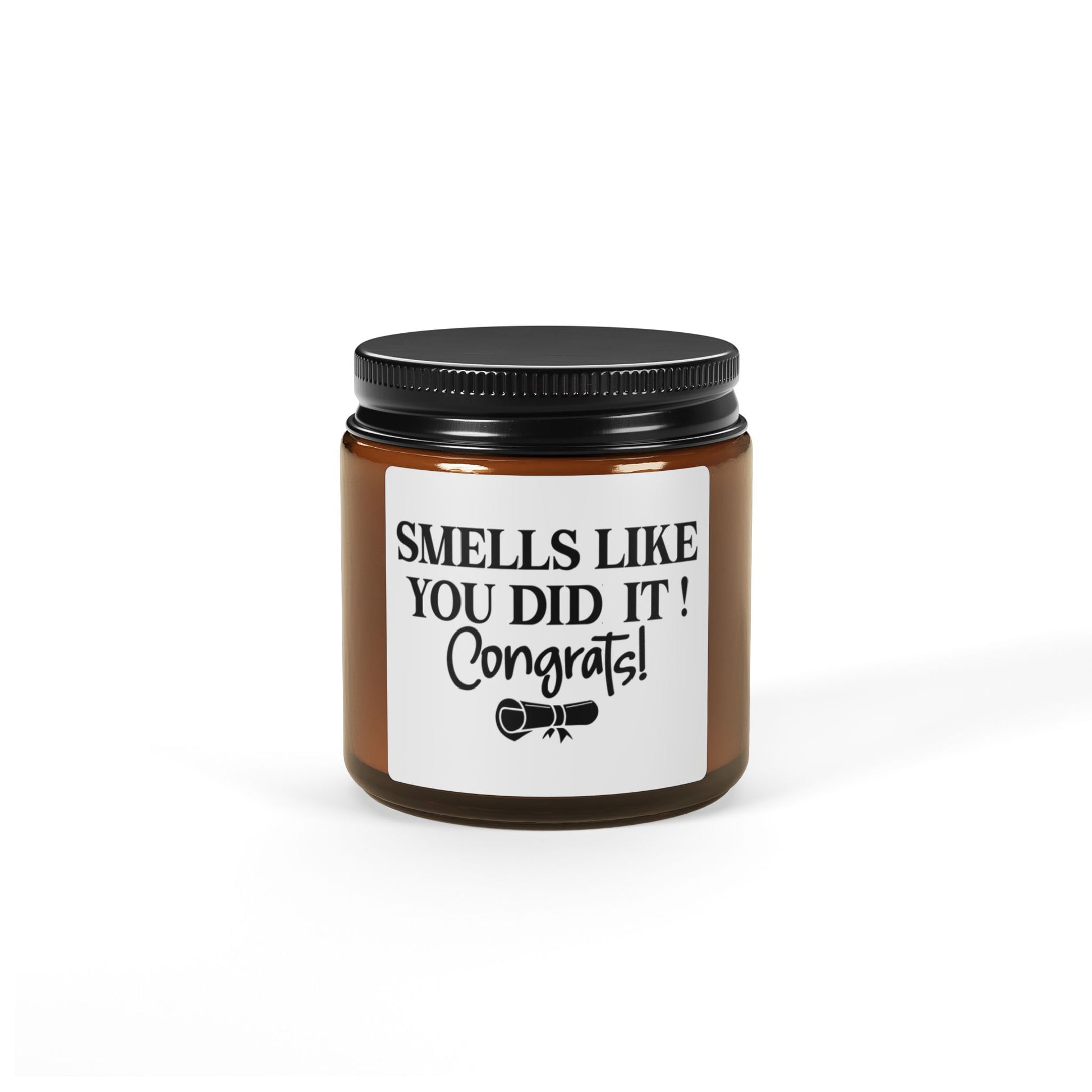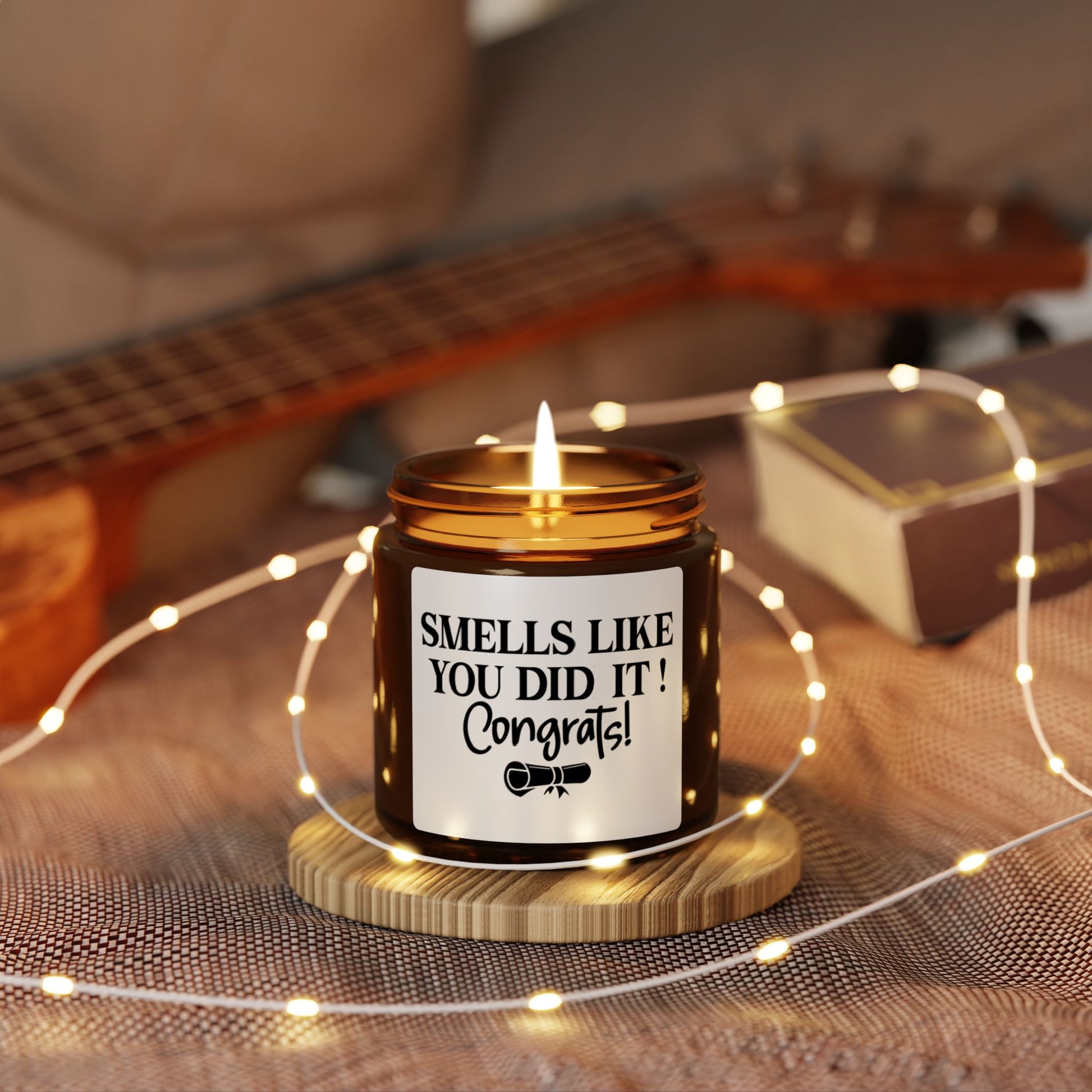 Add a delightful fragrance to any room and turn it into a safe haven from everyday hustle and bustle. This personalized scented candles come in 9oz and 4oz jars to perfectly match your needs. Choose between 6 scents to achieve your desired effect or opt for the unscented candle if you need undisturbed ambience. All candles are compatible with ASTM safety standards, are made with 100% natural soy wax blend with a 100% cotton wick. These candles come in Amber jars for an extra atmospheric touch.