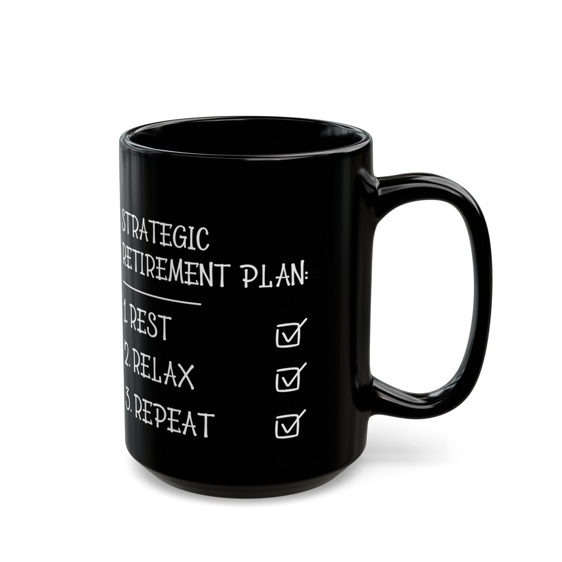 Strategic Retirement Plan Black Mug – Ideal Gift for Retirees