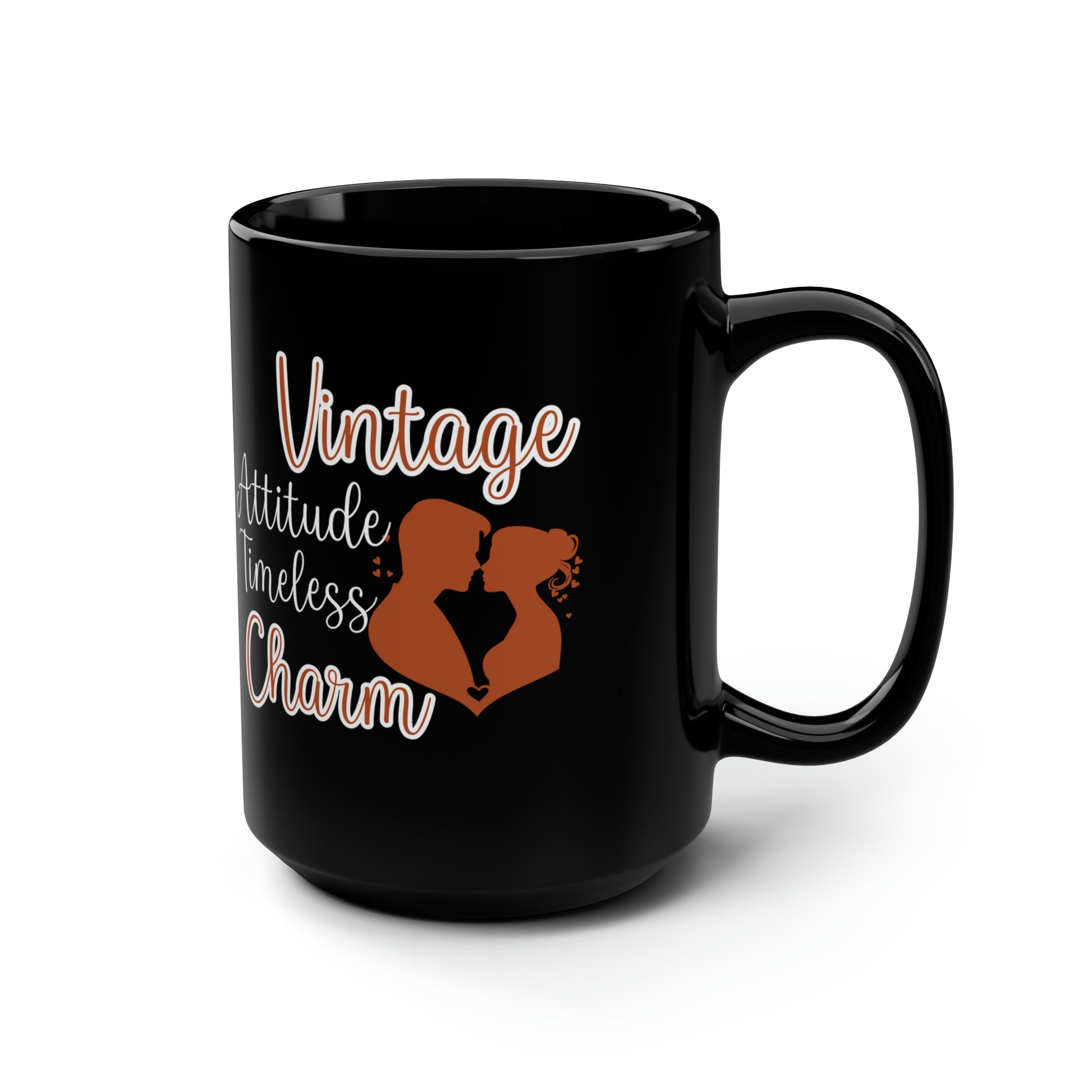 Embrace classic elegance with this stylish black coffee mug featuring the phrase "Vintage Attitude Timeless Charm" alongside a romantic silhouette design. Perfect for those who love a touch of nostalgia with a modern twist, this high-quality ceramic mug is both dishwasher and microwave safe. Ideal for gifting to vintage lovers, romantics, or anyone who appreciates timeless charm, this mug makes a great addition to any morning routine.