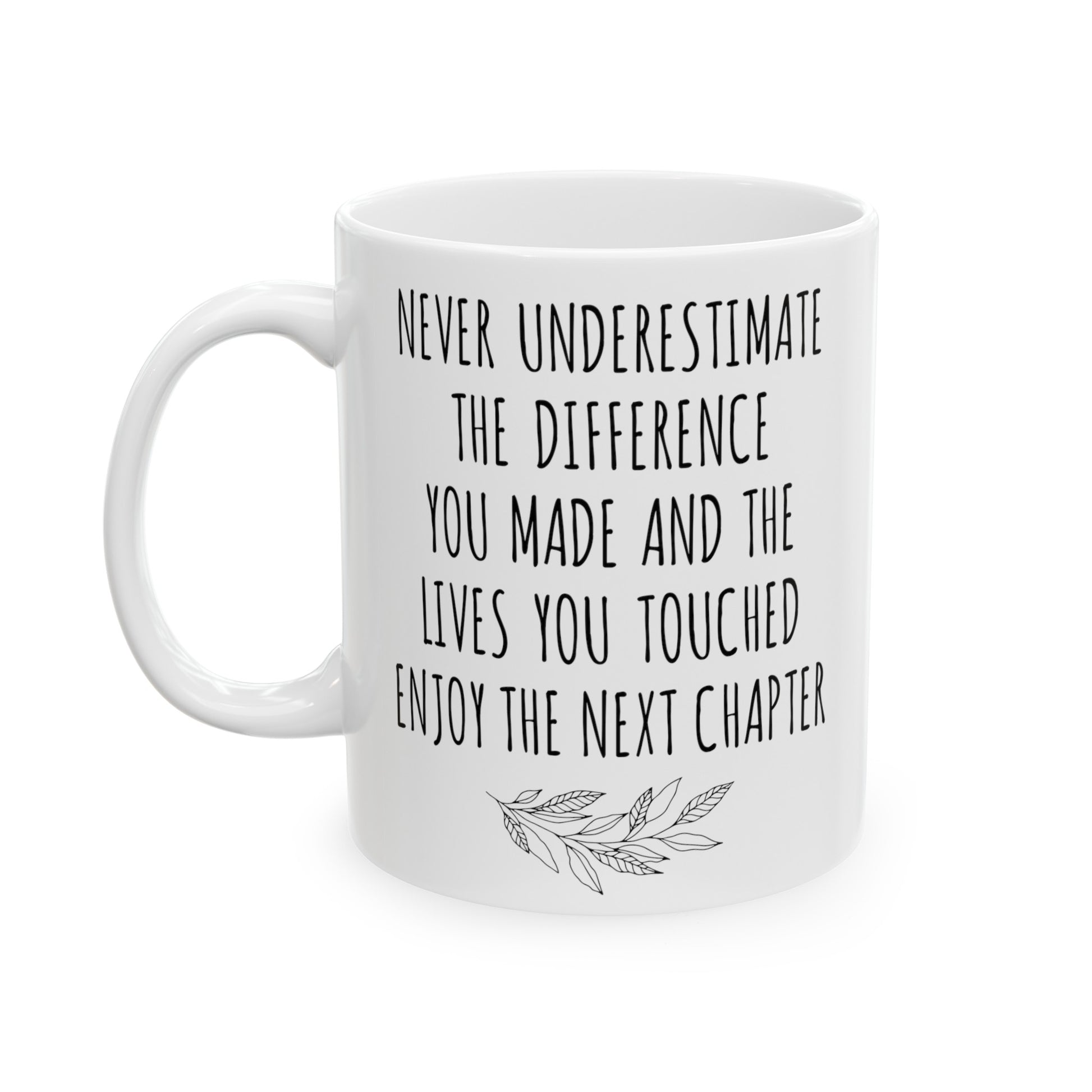 Never Underestimate the Difference You Made White Mug – Inspirational Retirement Gift
