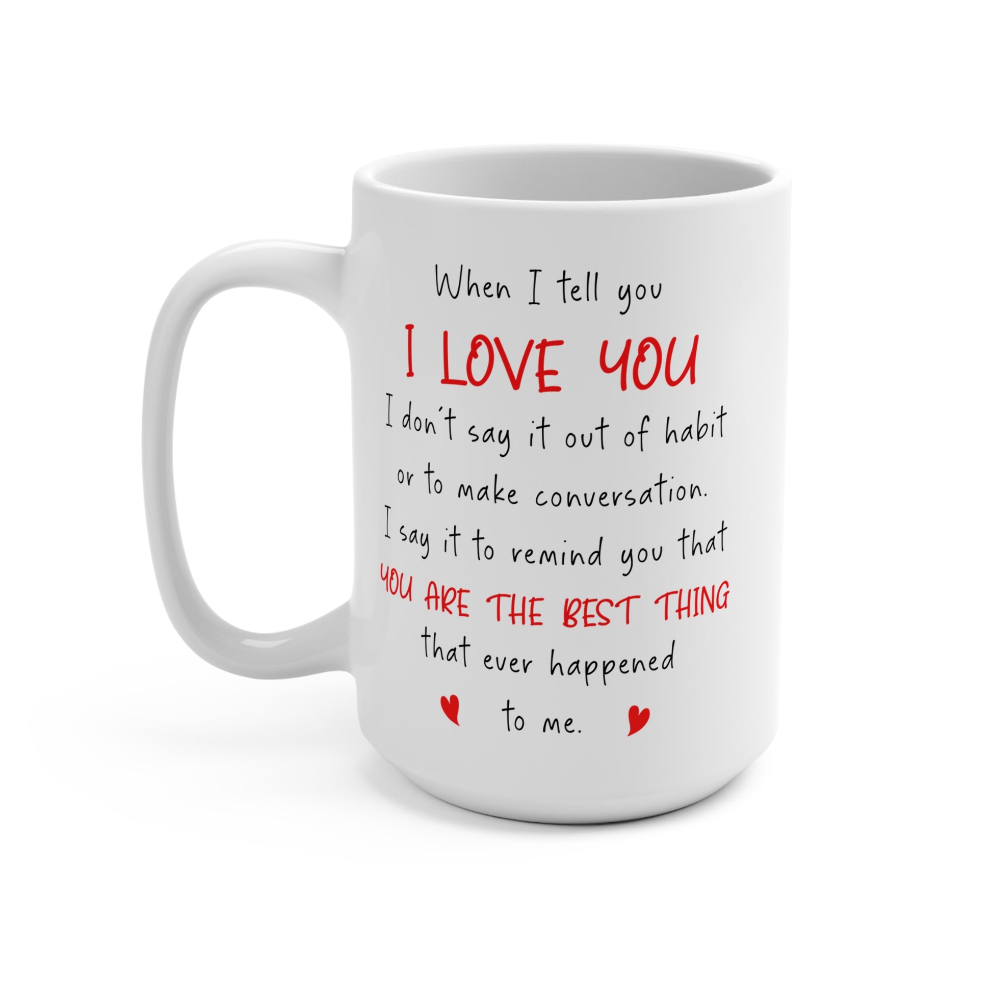 This 15oz white ceramic mug is more than just a vessel for coffee—it's a powerful daily reminder of love. The heartfelt message reads: